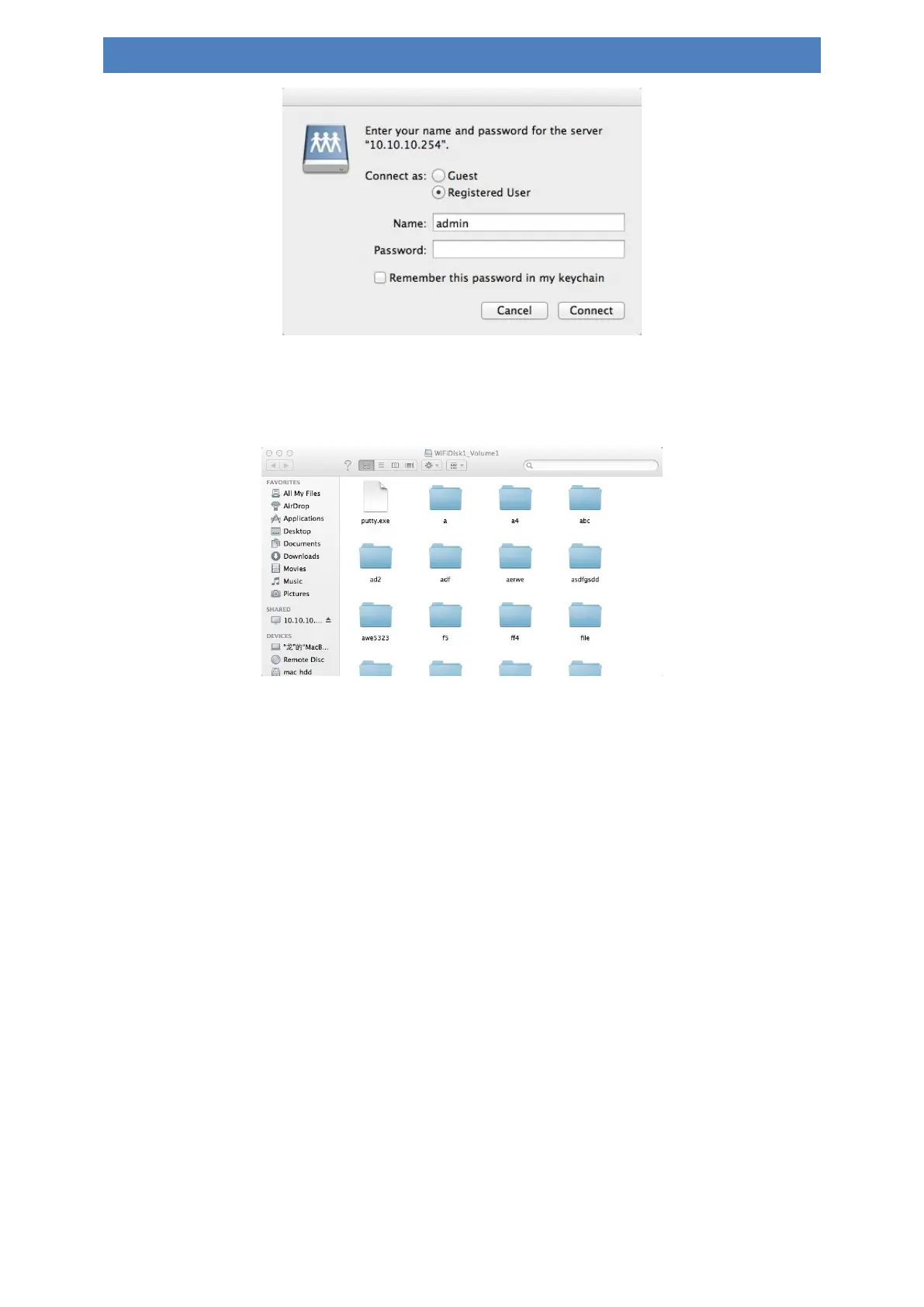 the WiFi Storage, or download the data from the WiFi Storage into MAC.