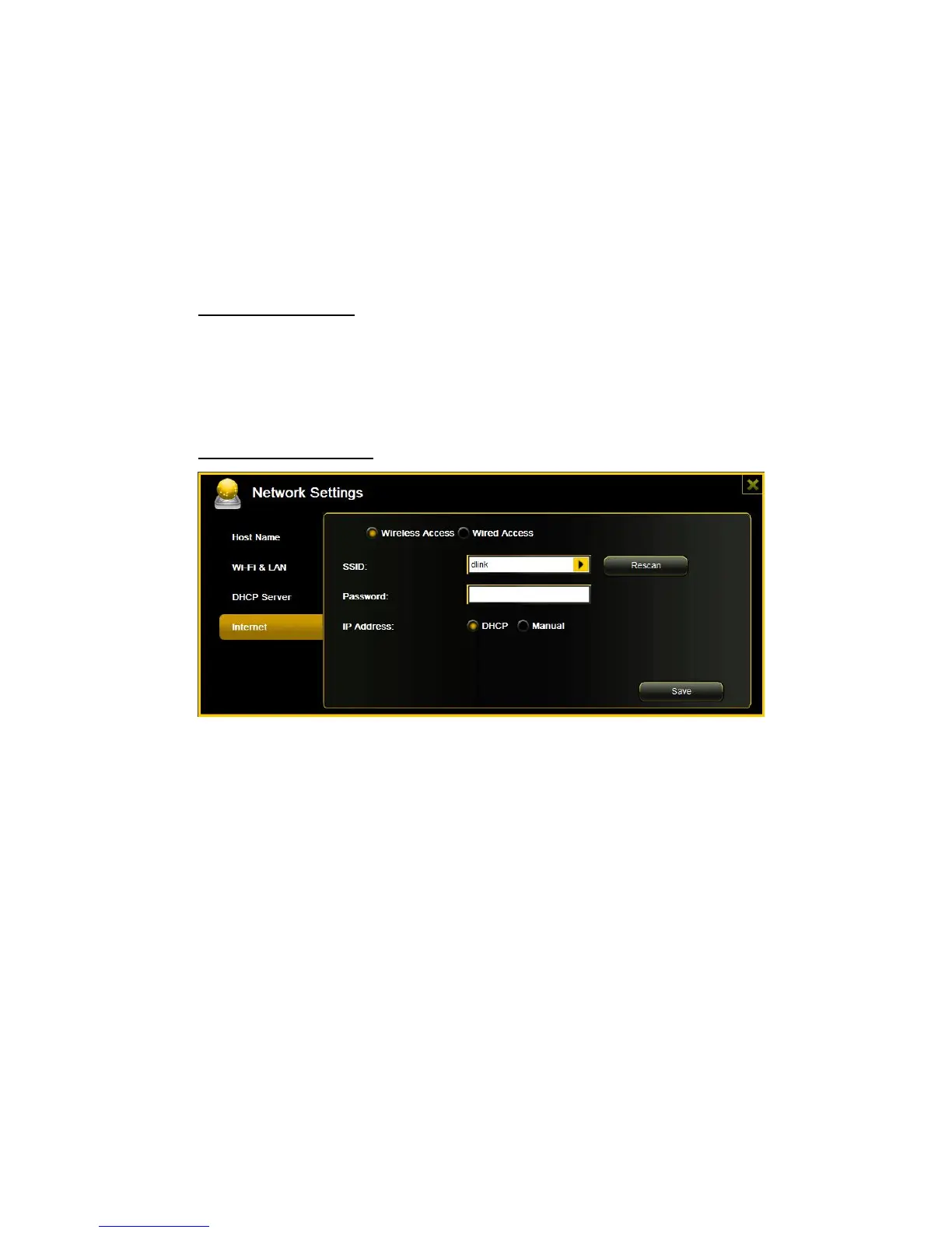You can choose between 2 available Internet Access options. – By default Wired Access is selected.
