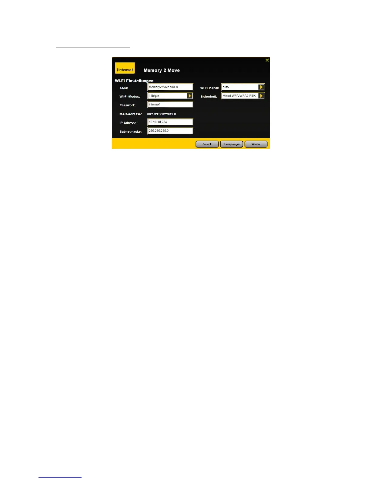 Grundeinstellung steht hier „Memory2Move-XXXX“. 32 Zeichen sind