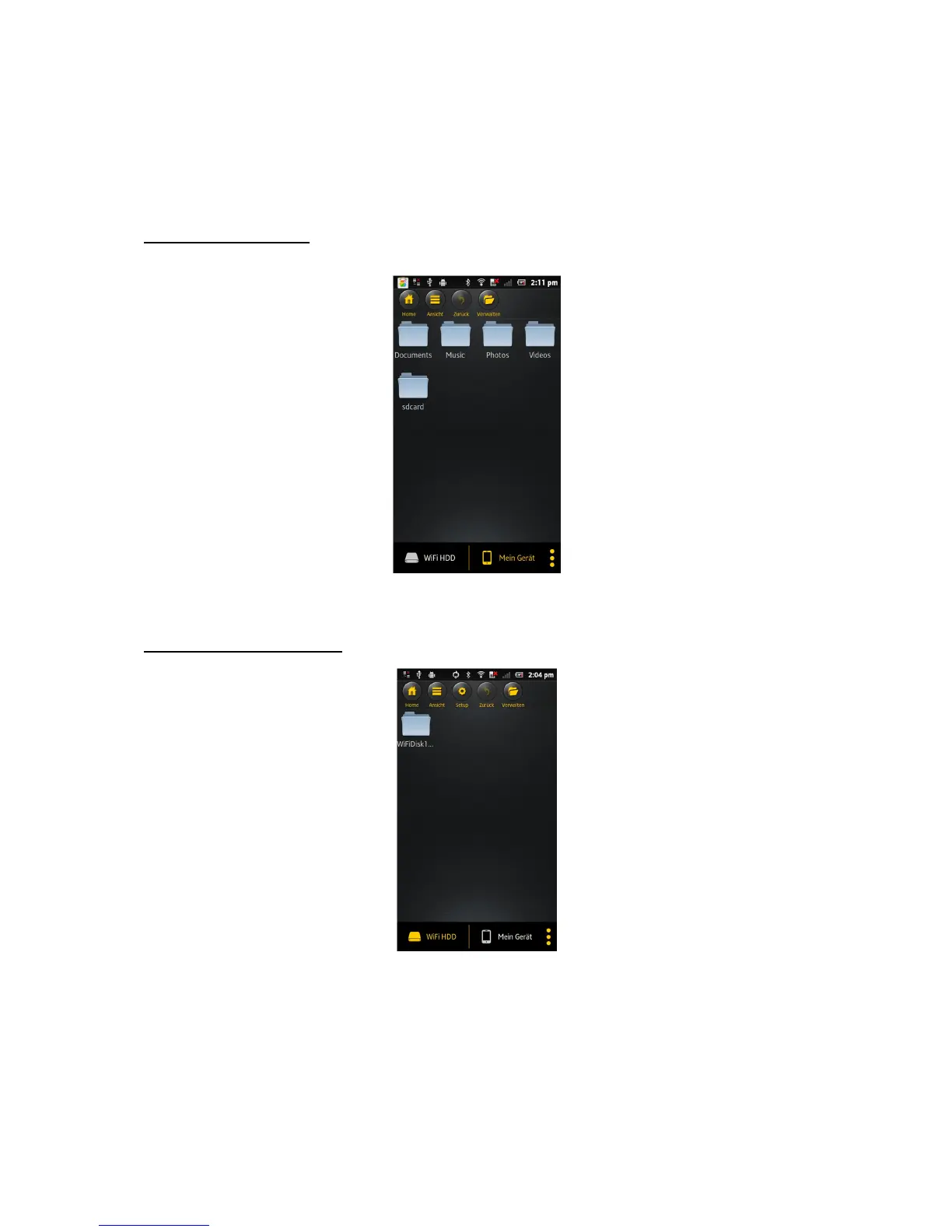 „Memory 2 Move” geführt, dies ist Ihr direkter Zugriff auf die Wi-Fi Festplatte. Das „Mein Gerät” Menü ist für