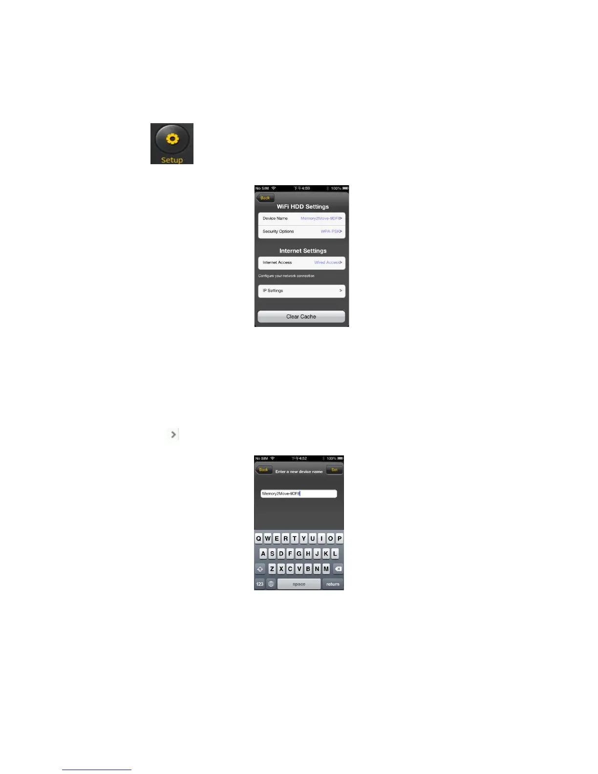 Unter den Wi-Fi HDD Einstellungen erscheinen die Sicherheitsoptionen: Die Wi-Fi Festplatte unterstützt