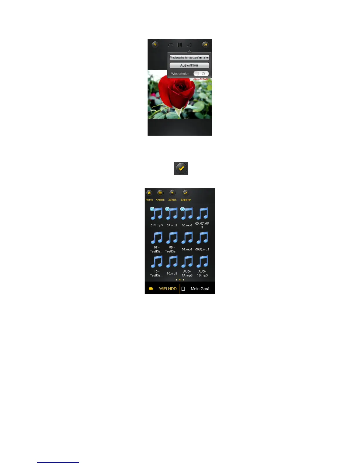 Hinweis Die Wi-Fi Festplatte unterstützt die Wiedergabe der folgenden Bildformate: .jpg, .tiff, .gif