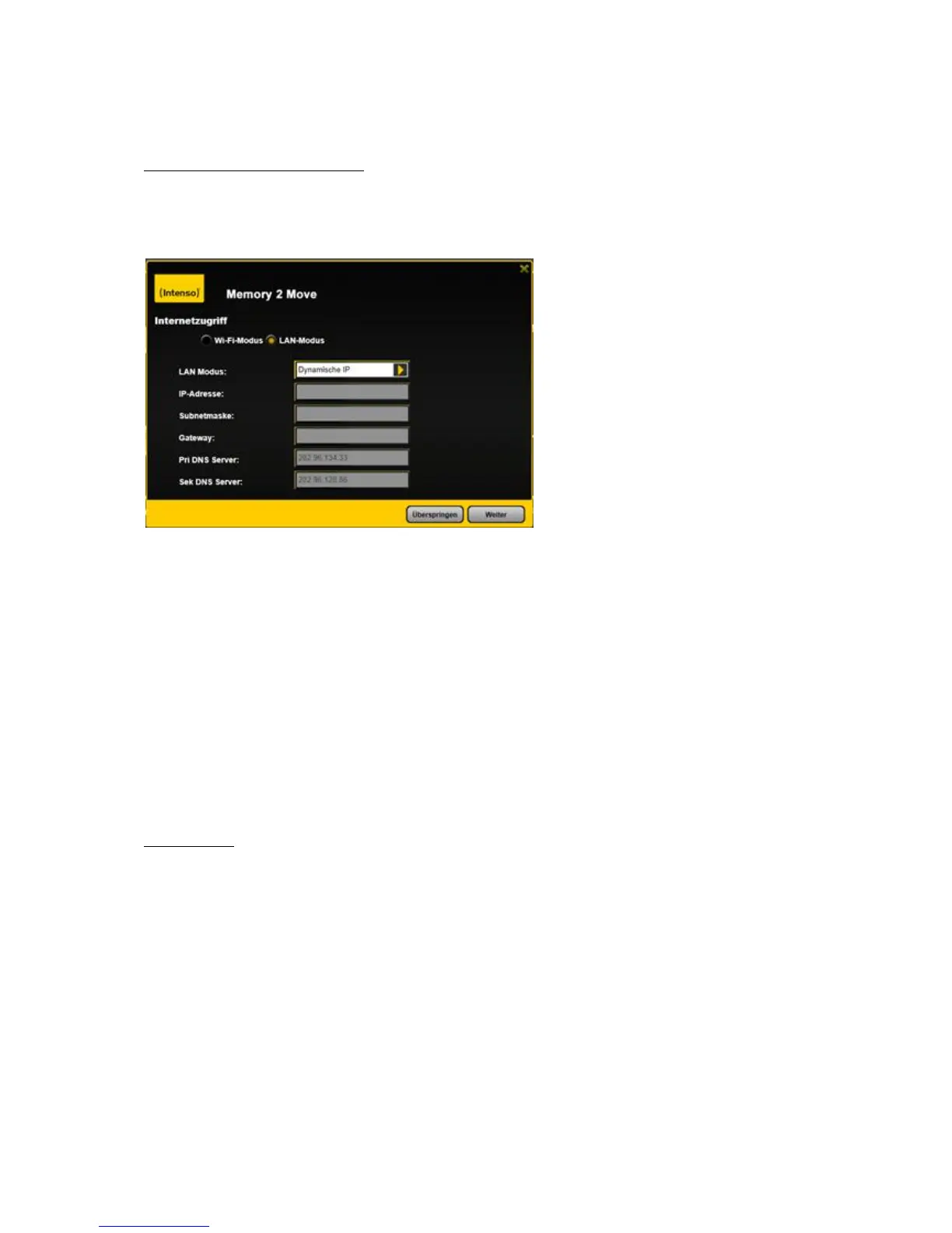 In der Grundeinstellung ist „Dynamische IP“ ausgewählt. Sie können manuell eine IP Adresse