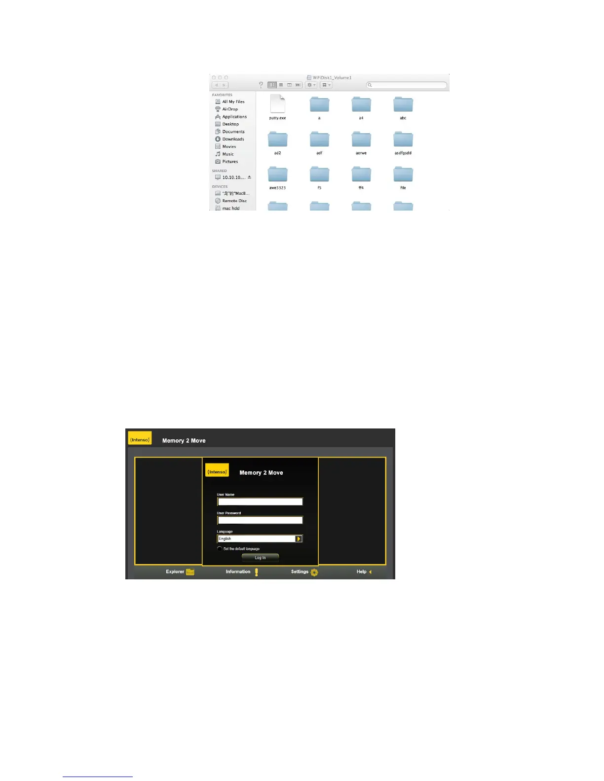 Once your Wi-Fi enabled-PC is successfully connected to the “Memory 2 Move”, using the “WiFi