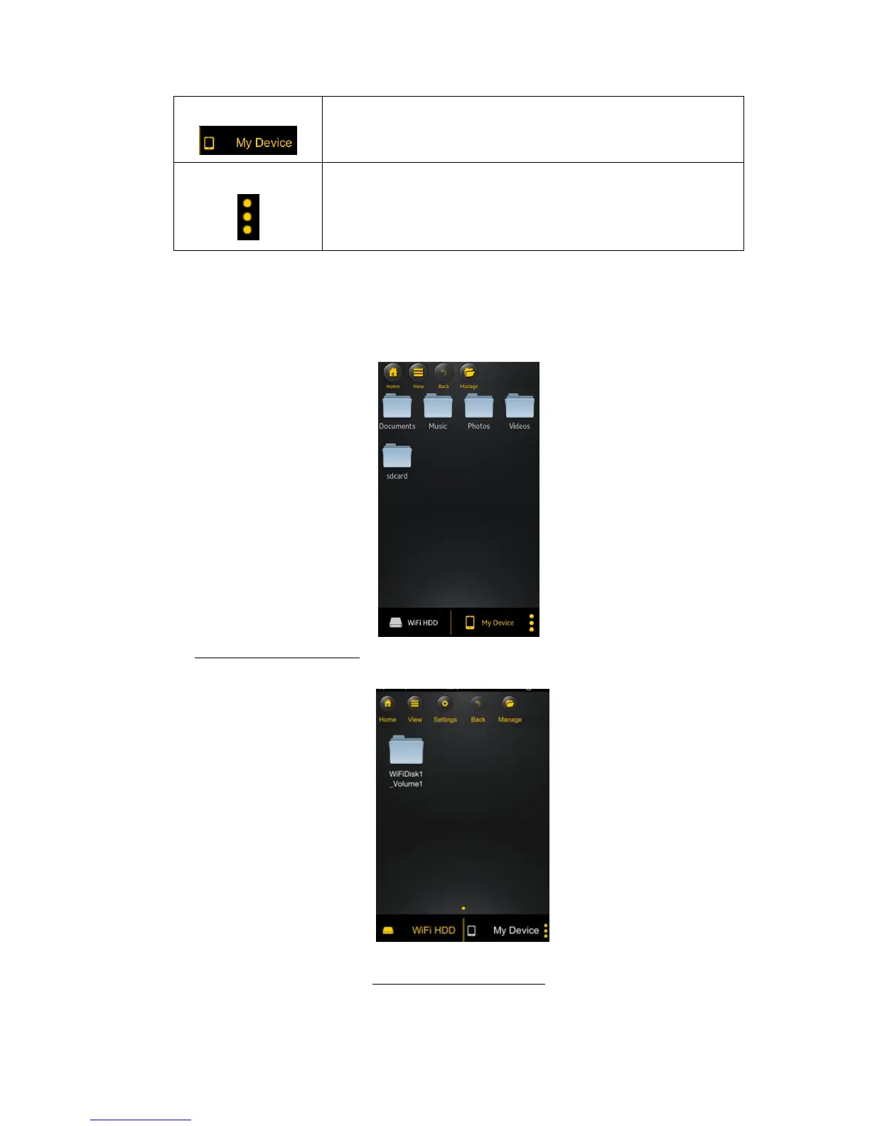 My Device Main Screen View – By default, the Documents folder, Music folder, Photos Folder,