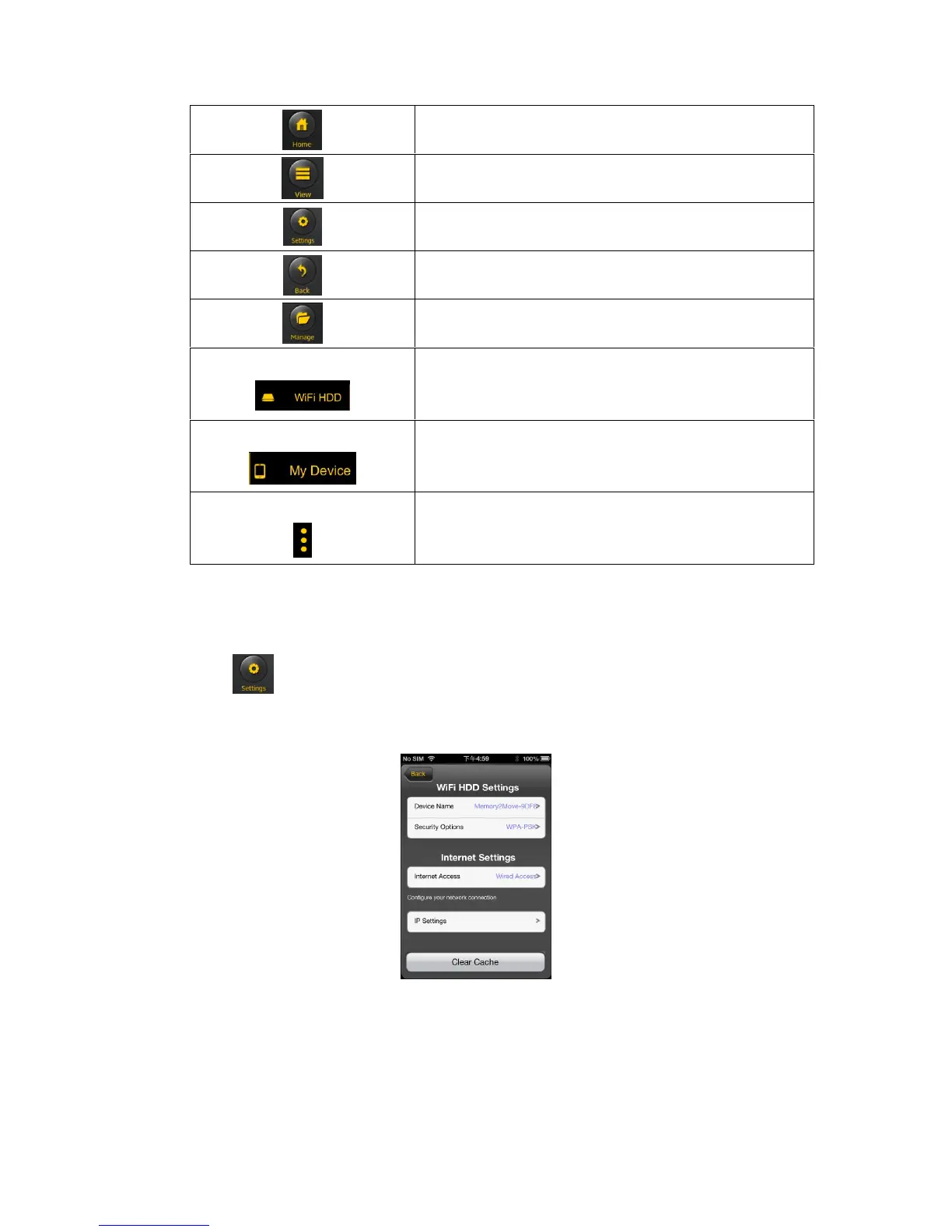 Click on to change the Wi-Fi Disk configuration. This feature only appears when switched to