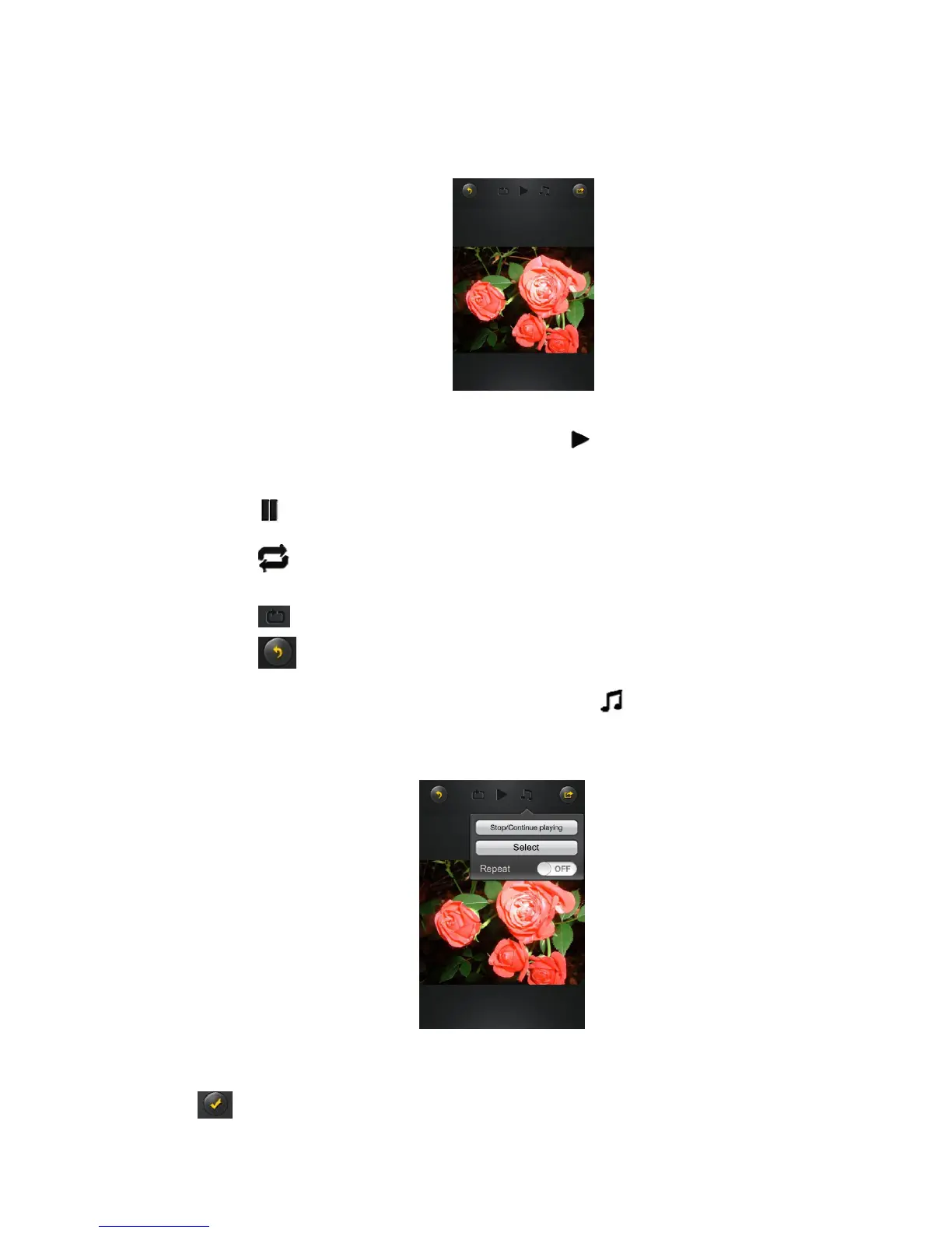 Click the button to stop the slideshow from playing and press again to continue playing.