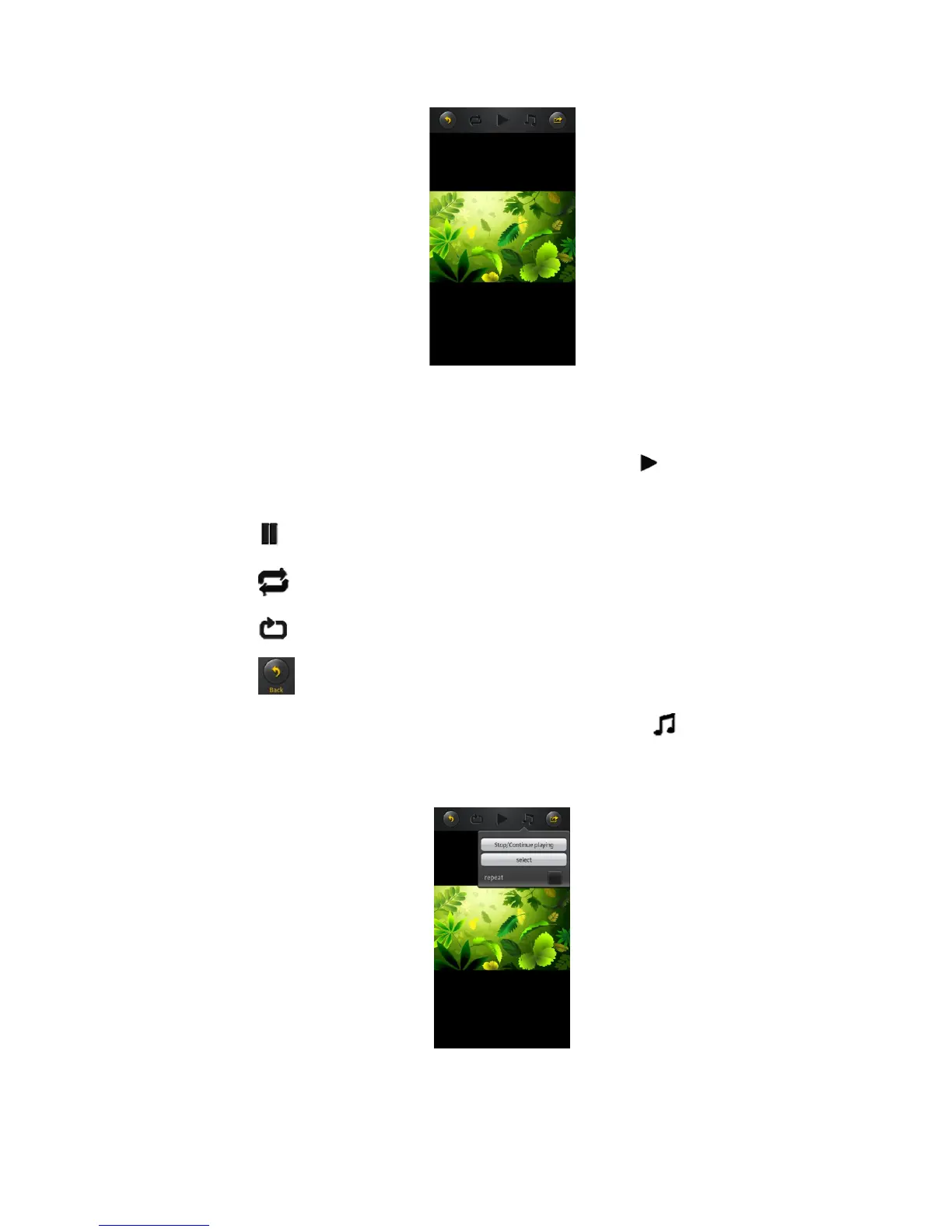 Click the button to stop the slideshow from playing and press again to continue playing.