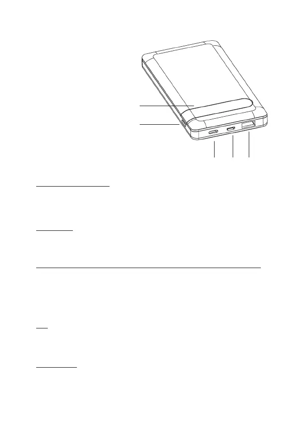 A mobiltöltő microUSB In csatlakozó (max. 5V/2.1A = max. 10.5 Wa) vagy USB-C In/Out PD csat-