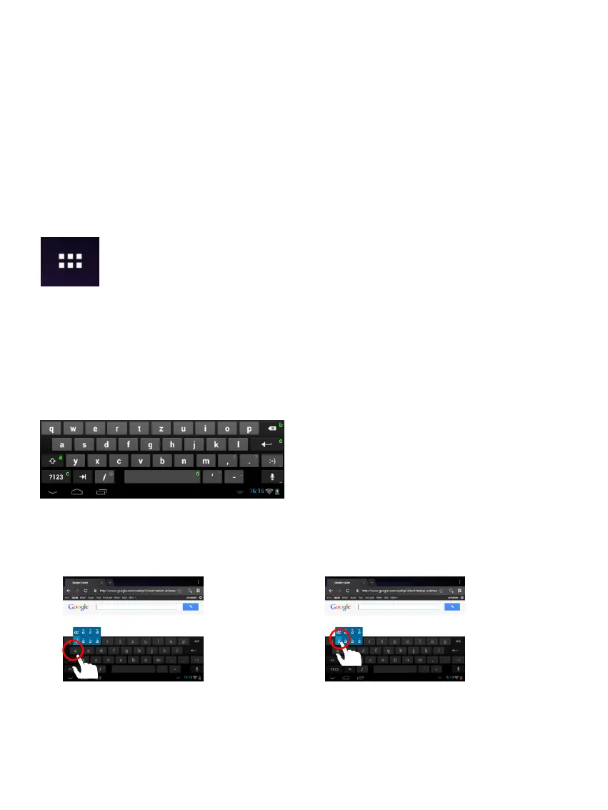 Per inserire un carattere speciale come ad esempio “ä”, tocchi a lungo col dito il tasto „a“ per aprire