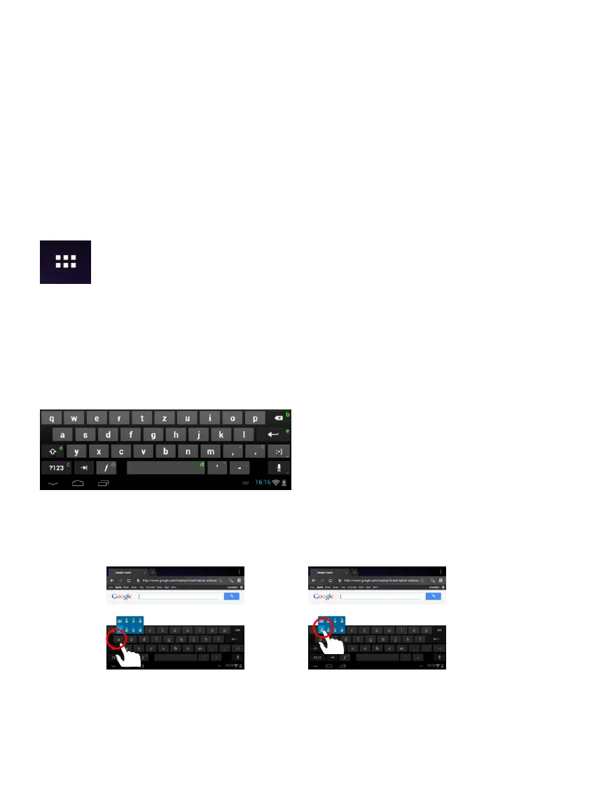 Toque durante mais tempo na tecla “a” Seleccione a letra pretendida do menu de