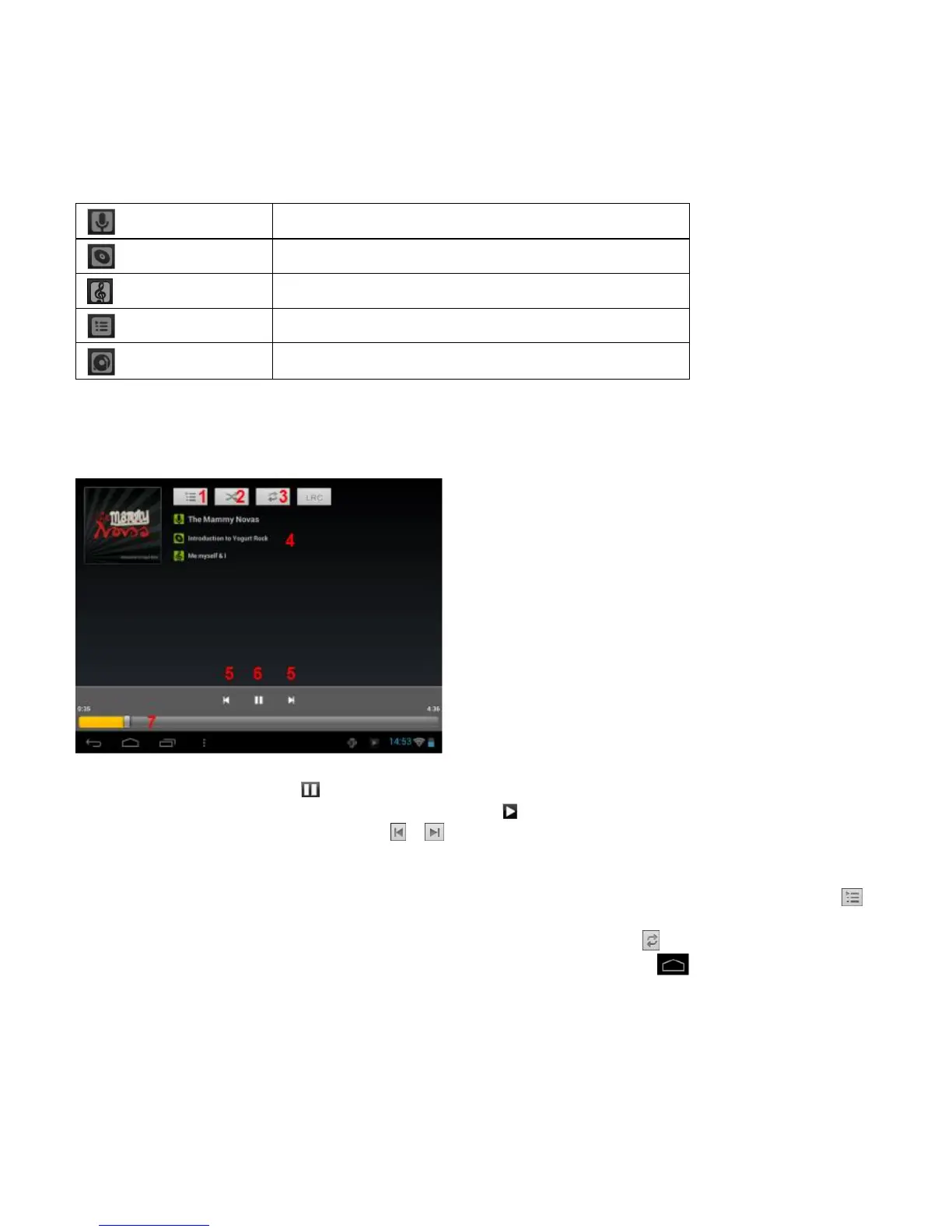 lecture ou la lecture en cours. Pour cela, tapez simplement brièvement sur l'icône appropriée.
