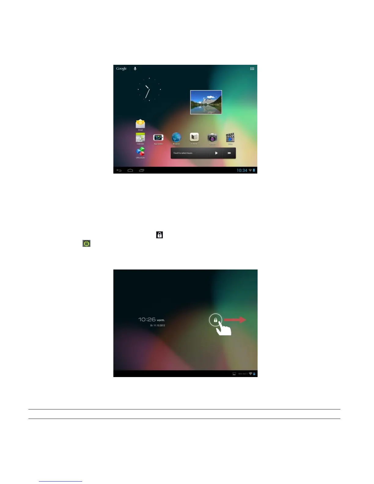 Advice: Draw the lock symbol to the appearing camera symbol to open the camera application directly.