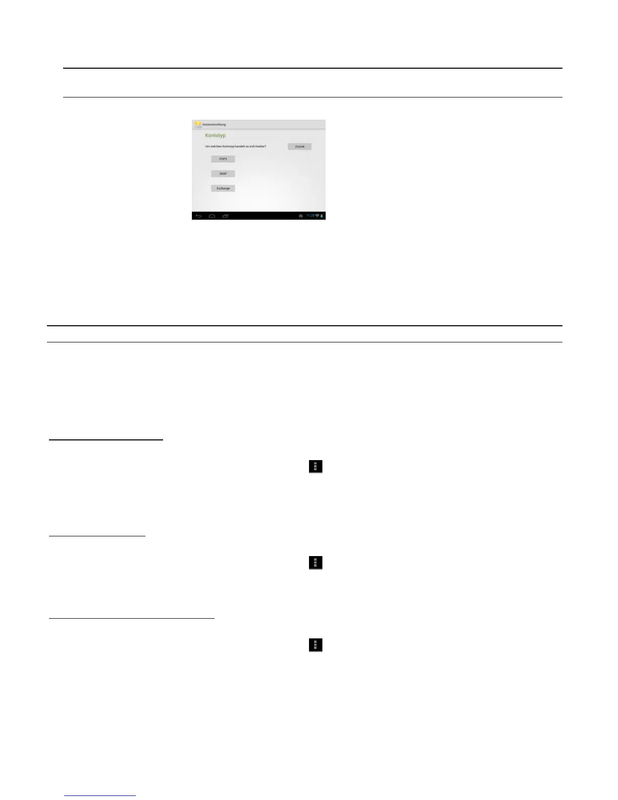 item `Settings´ and subsequently `Add account´ to create a new mailbox.