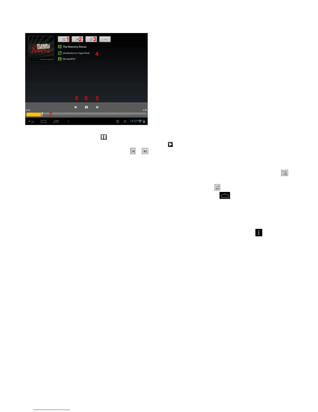 Tapez sur l'icône Avant ou Arrière / pour lire le titre précédent ou suivant.
