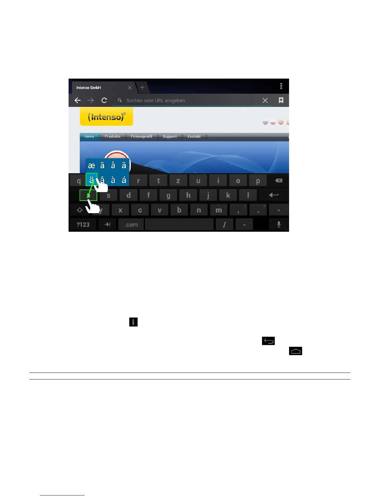 caractère spécial souhaité, par exemple un « ä » et retirez votre doigt de l'écran. Vous avez maintenant saisi