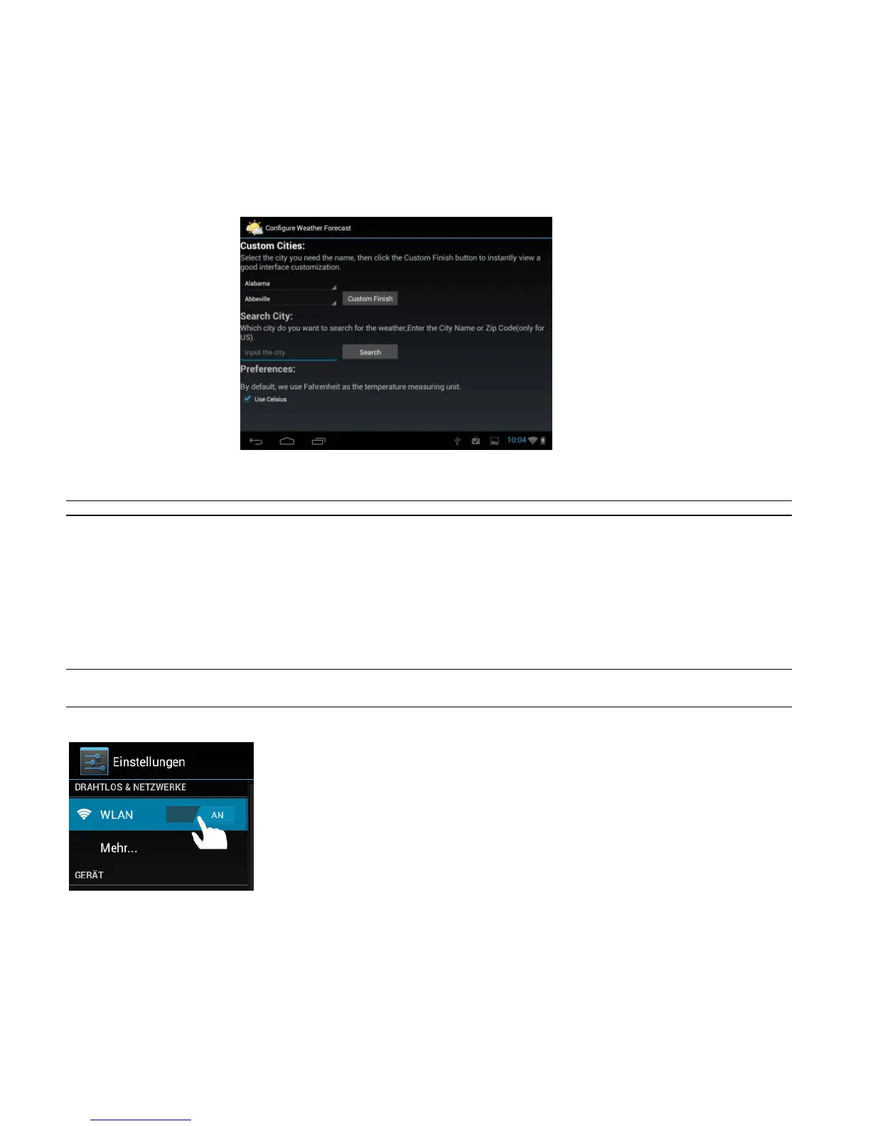 herzustellen, tippen Sie bitte auf das WIFI Icon auf dem Startbildschirm, oder öffnen Sie in den
