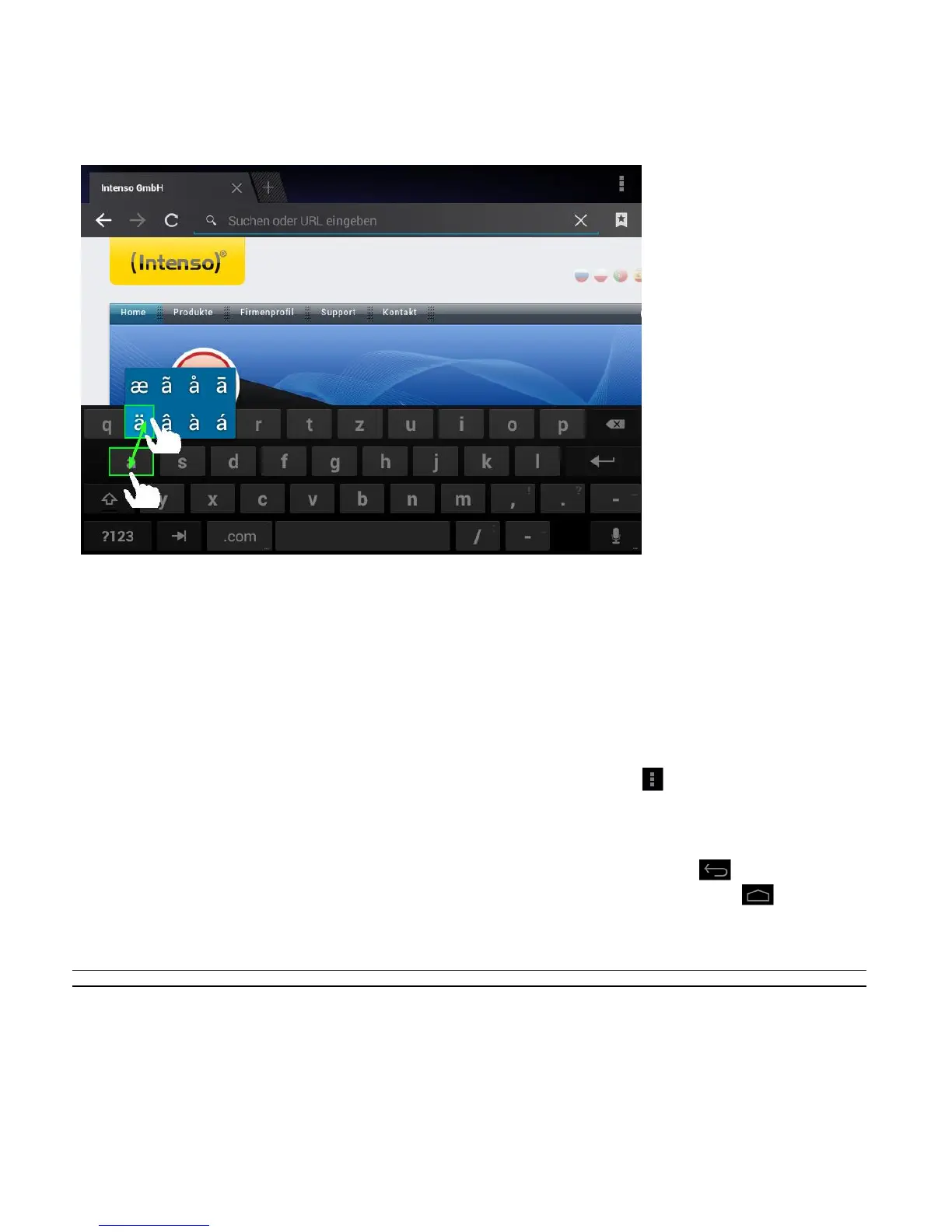 beispielsweise das „ä“ und lösen Sie den Finger wieder vom Display. Sie haben nun ein „ä“ eingeben.