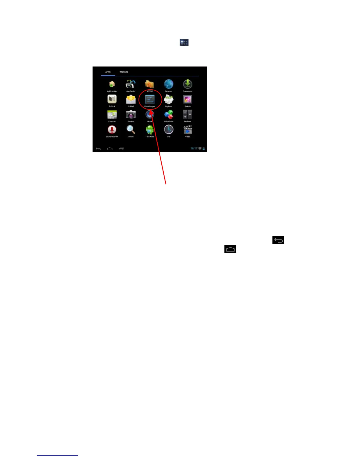 Tippen Sie im Anwendungsmenü auf das Einstellungen Icon, um die System Einstellungen aufzurufen.