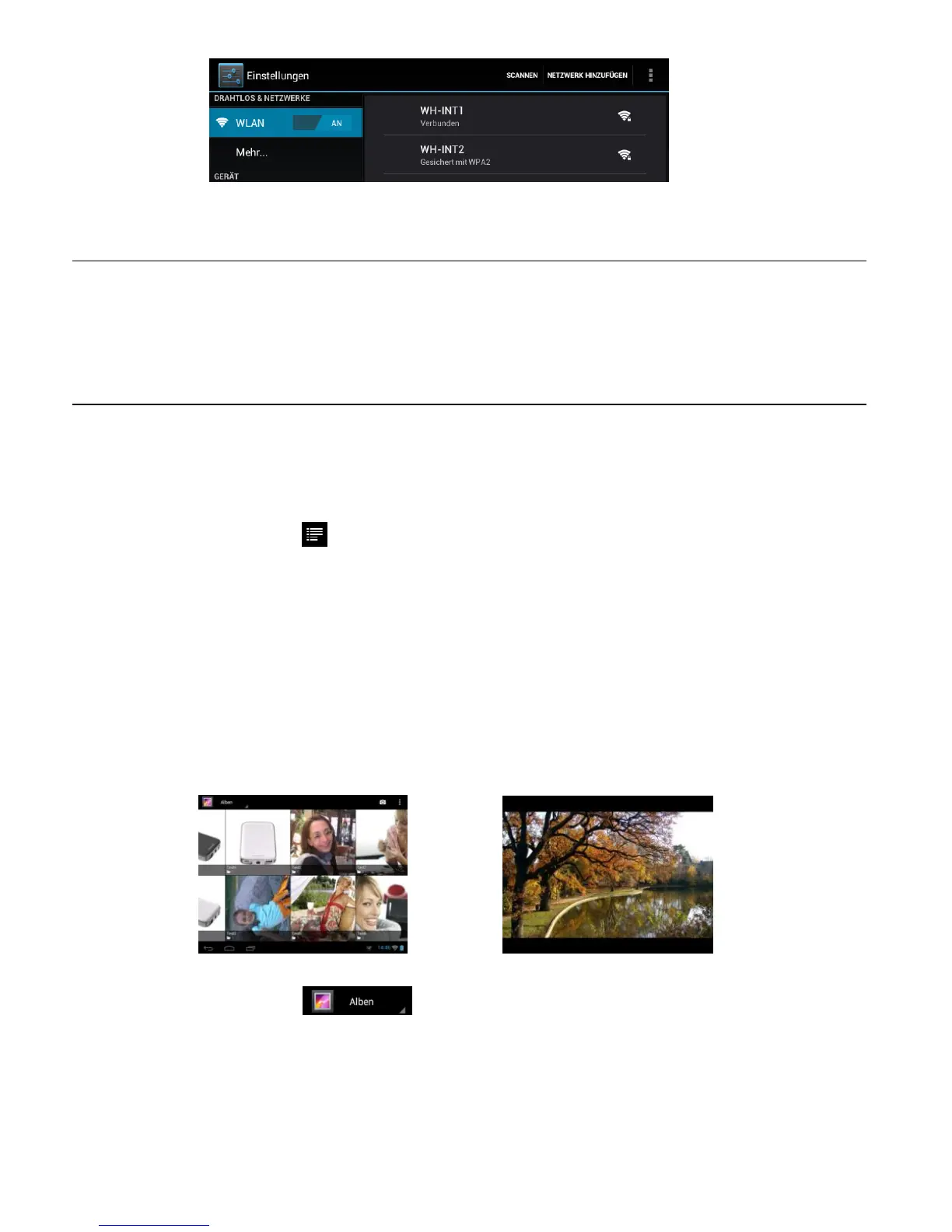 Naciśnij krótko na ikonę Galeria, aby uzyskać przegląd wszystkich dostępnych albumów i zdjęć.