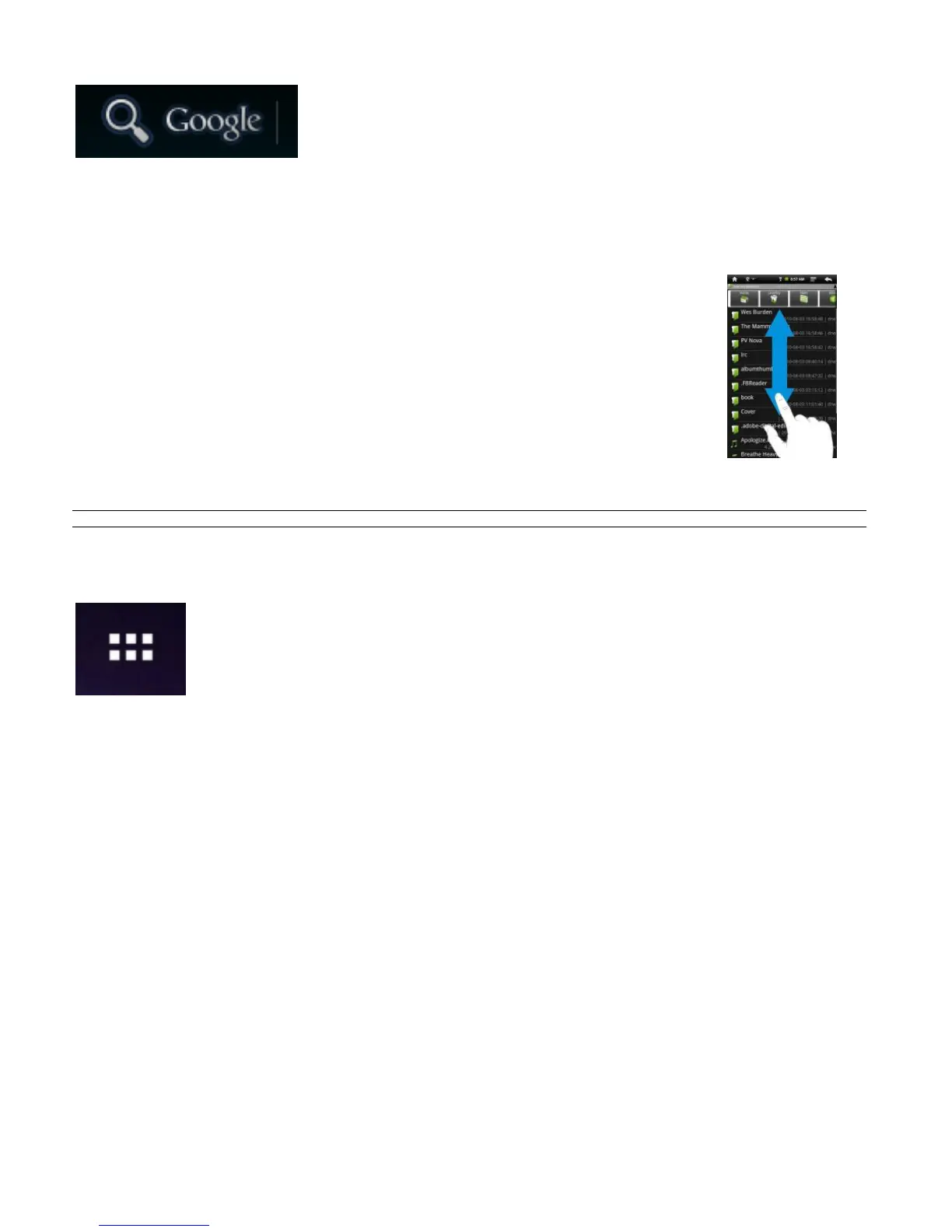 Коротко нажмите на Лупу для запуска Поиска в Google™. При помощи виртуальной клавиатуры