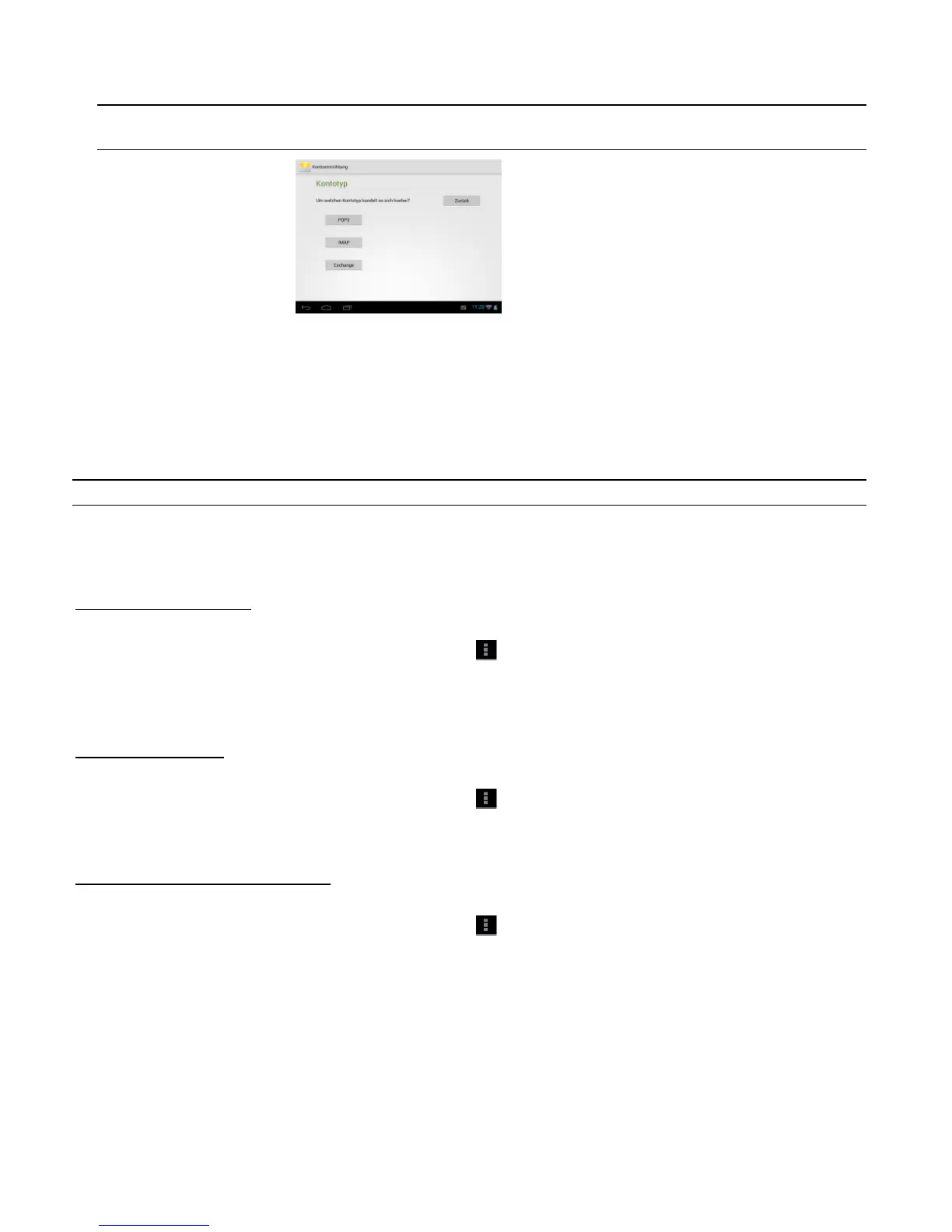 item `Settings´ and subsequently `Add account´ to create a new mailbox.