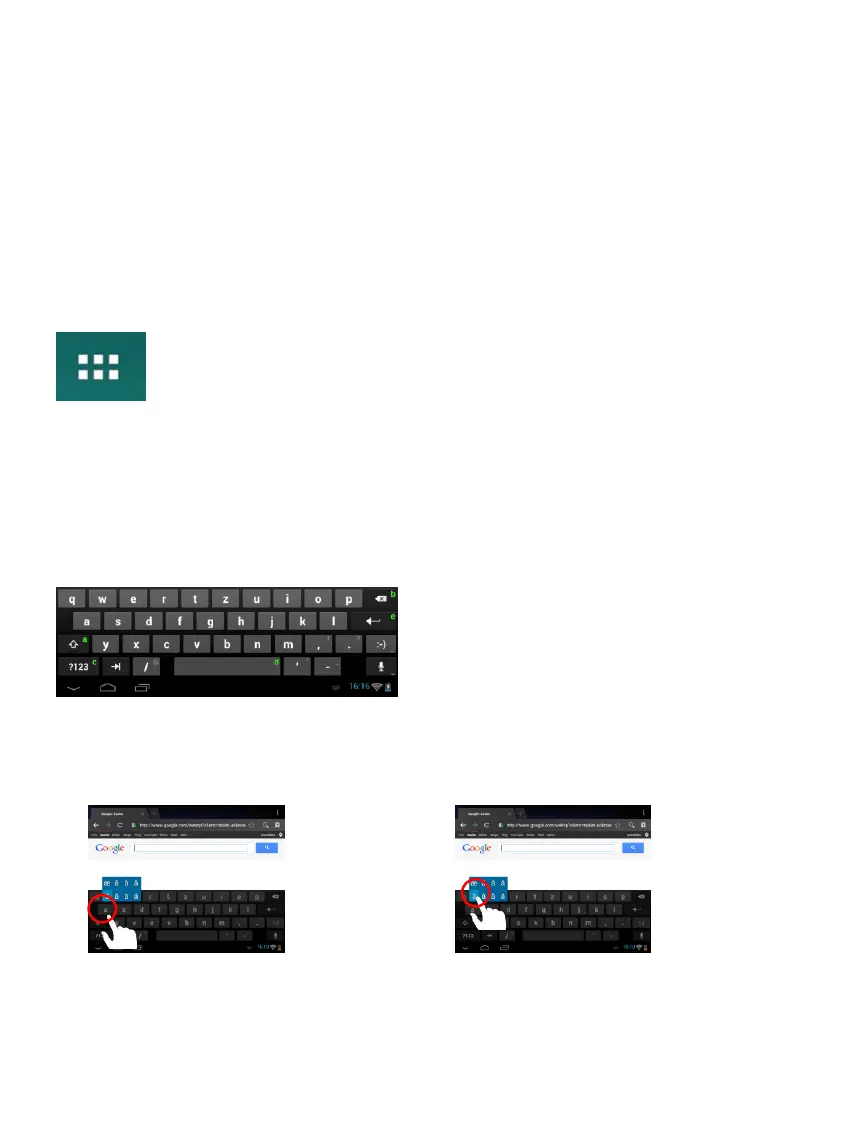 Per inserire un carattere speciale come ad esempio “ä”, tocchi a lungo col dito il tasto „a“ per aprire