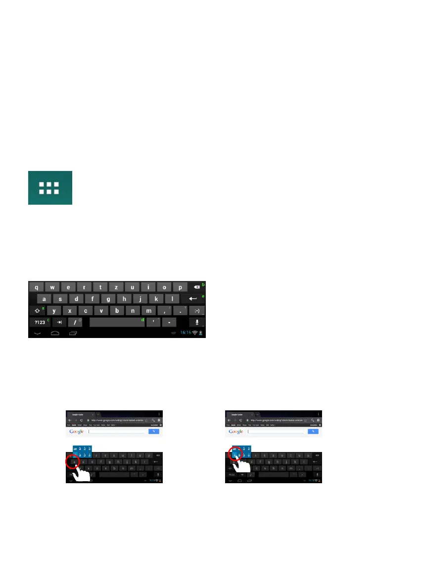 Para insertar un símbolo del tipo “ä”, mantenga pulsada con su dedo durante un espacio
