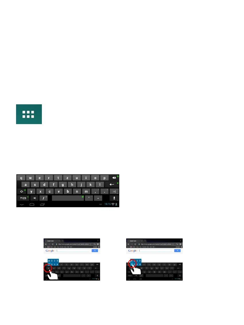 Para inserir um símbolo, tal como“ä” toque durante mais tempo com o dedo na tecla „a“ para