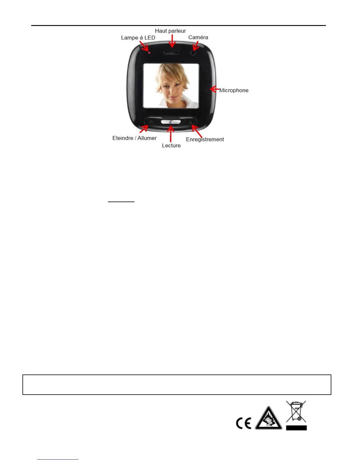 Mettez le player en service avec le bouton On / Off. En mode veille, vous pouvez vous voir à l'écran.