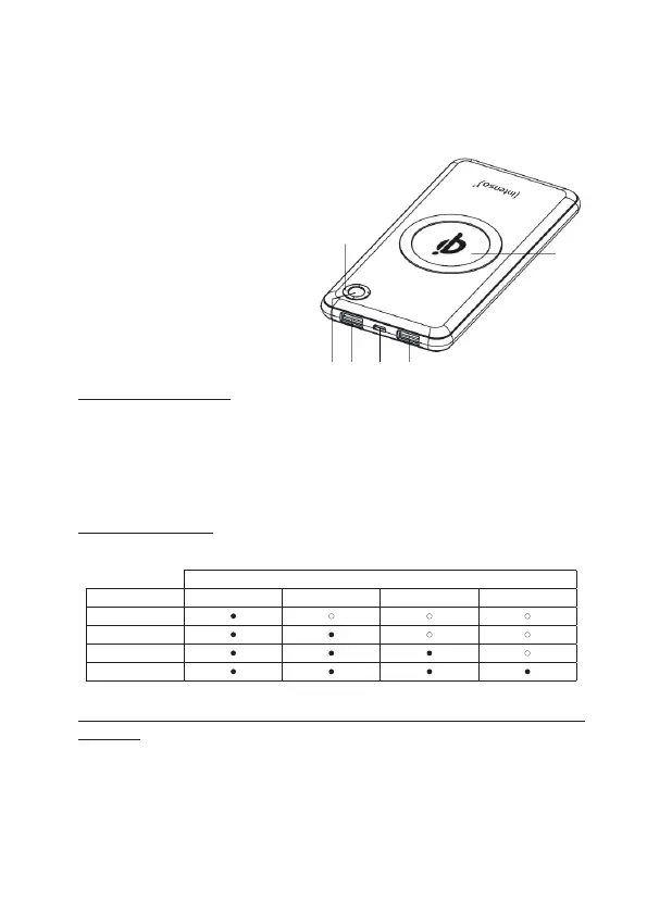 ven door de LED-statuslampjes. Zodra de powerbank volledig is opgeladen, blijven de status-LEDS