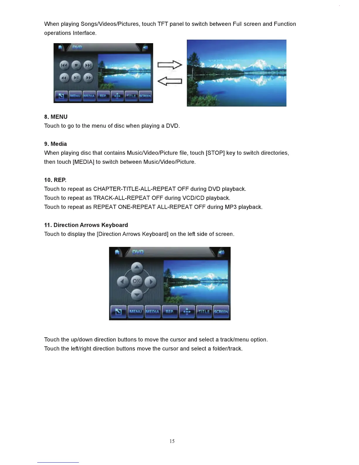 Touch to go to the title menu of disc when playing a DVD.
