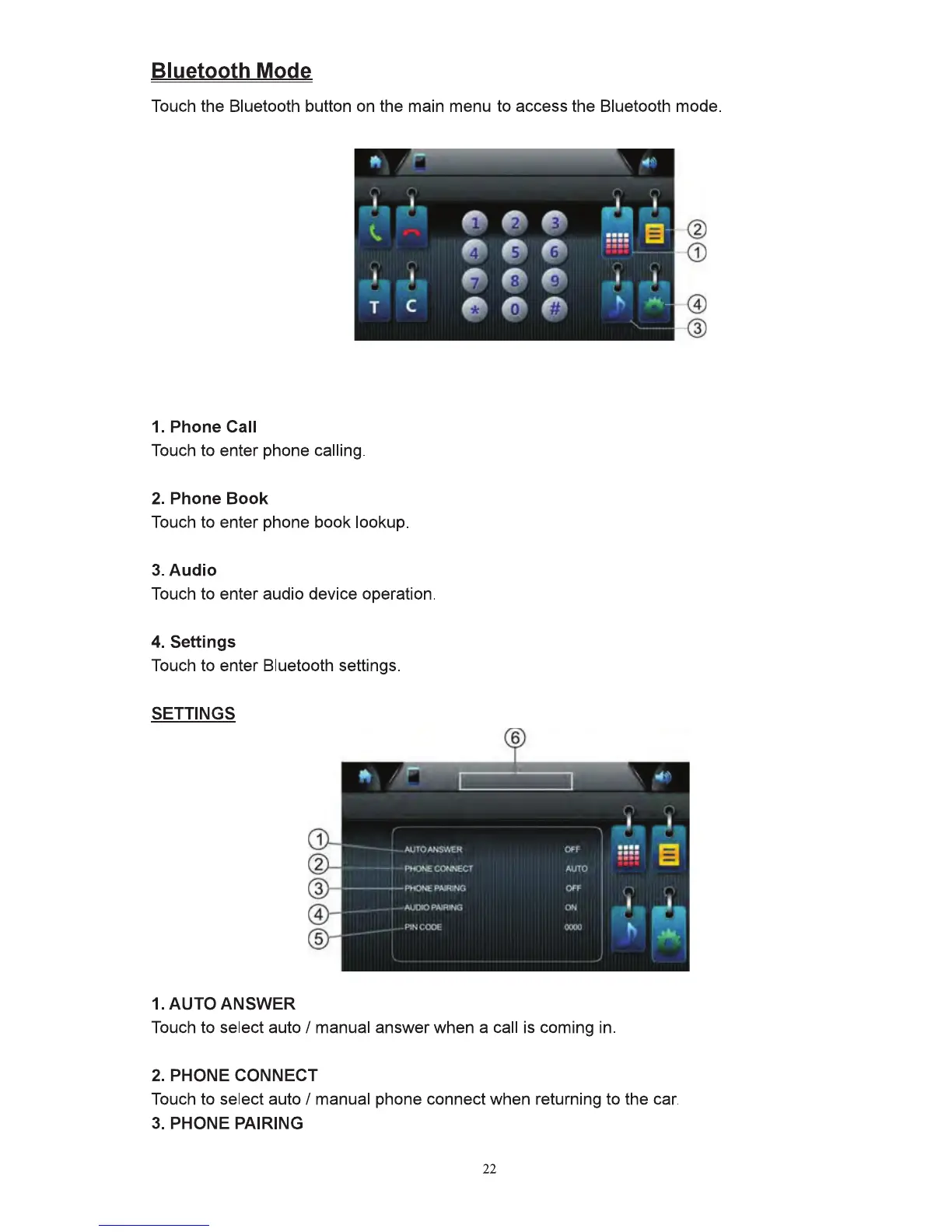 Inteq Car multimedia system - Bluetooth Mode; Phone Call; Phone Book; Audio
