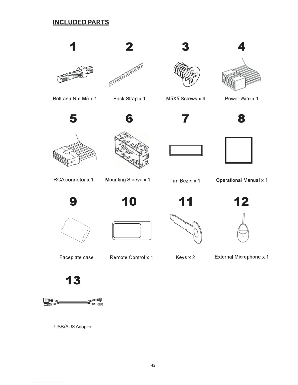 Bolt and Nut M5 x 1 Back strap x 1 M5X5 Screws x 4 Power
