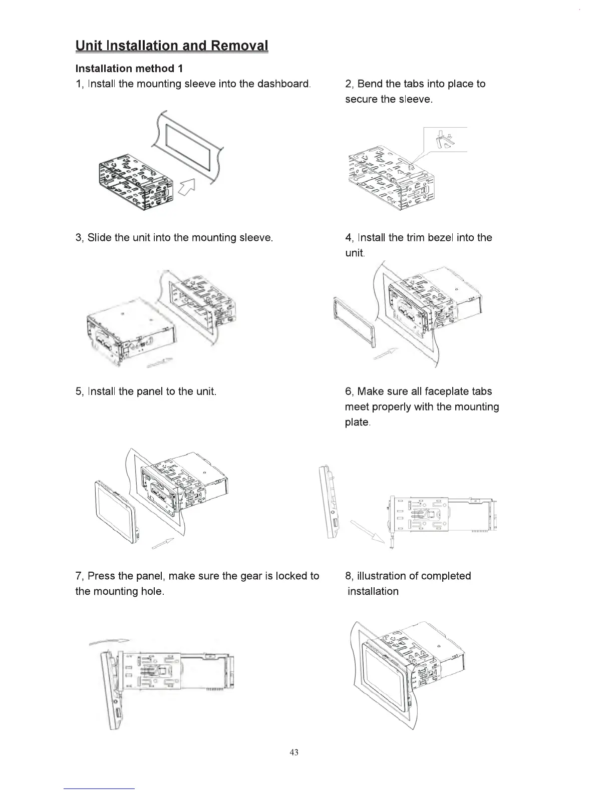 Inteq Car multimedia system - Unit Installation and Removal; Installation Method 1
