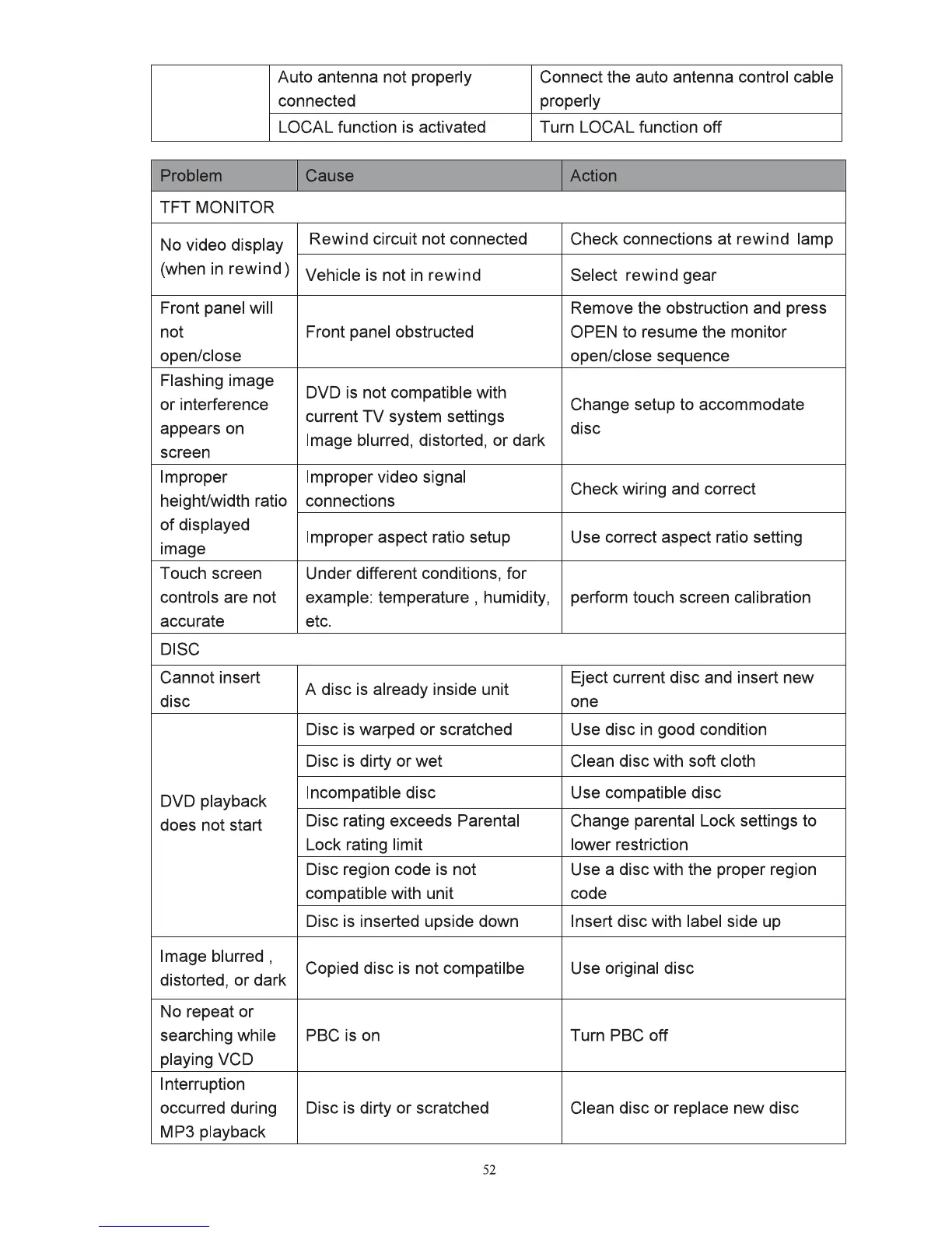 Problem Cause Action