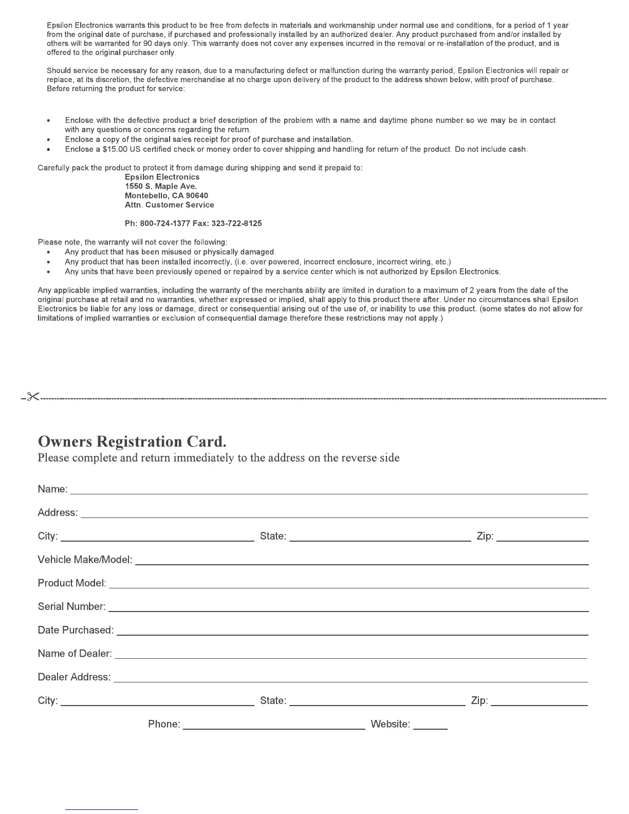 malfunction during the warranty period, Epsilon Electronics will repair
