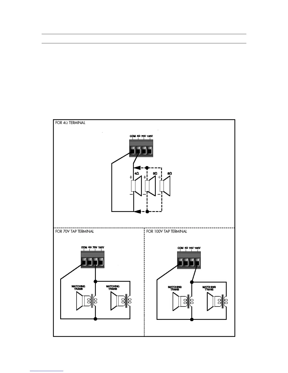 For high-voltage distibuted systems, connect with matching transformer to either 70V or