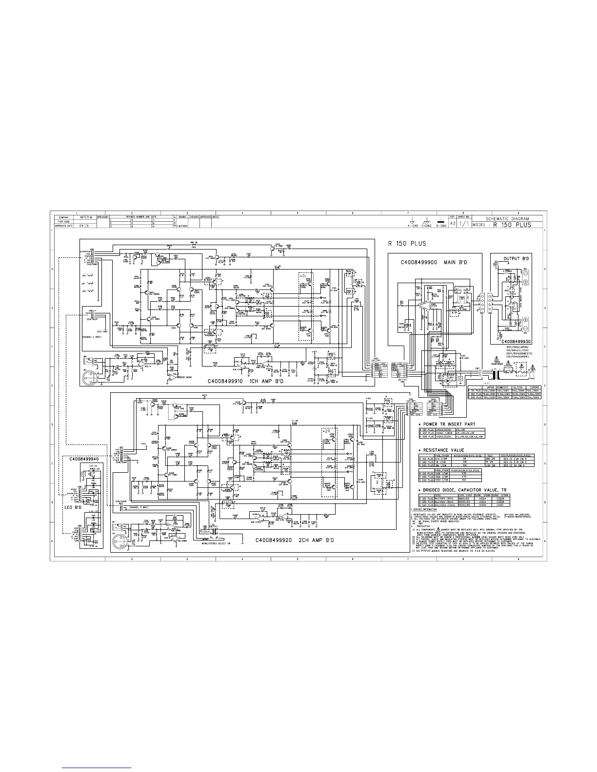 Inter-m Amplifier 300PLUS - SCHEMATIC DIAGRAM; R 150 PLUS;300 PLUS;500 PLUS SERIES; Main Board Components; SERVICE INFORMATION