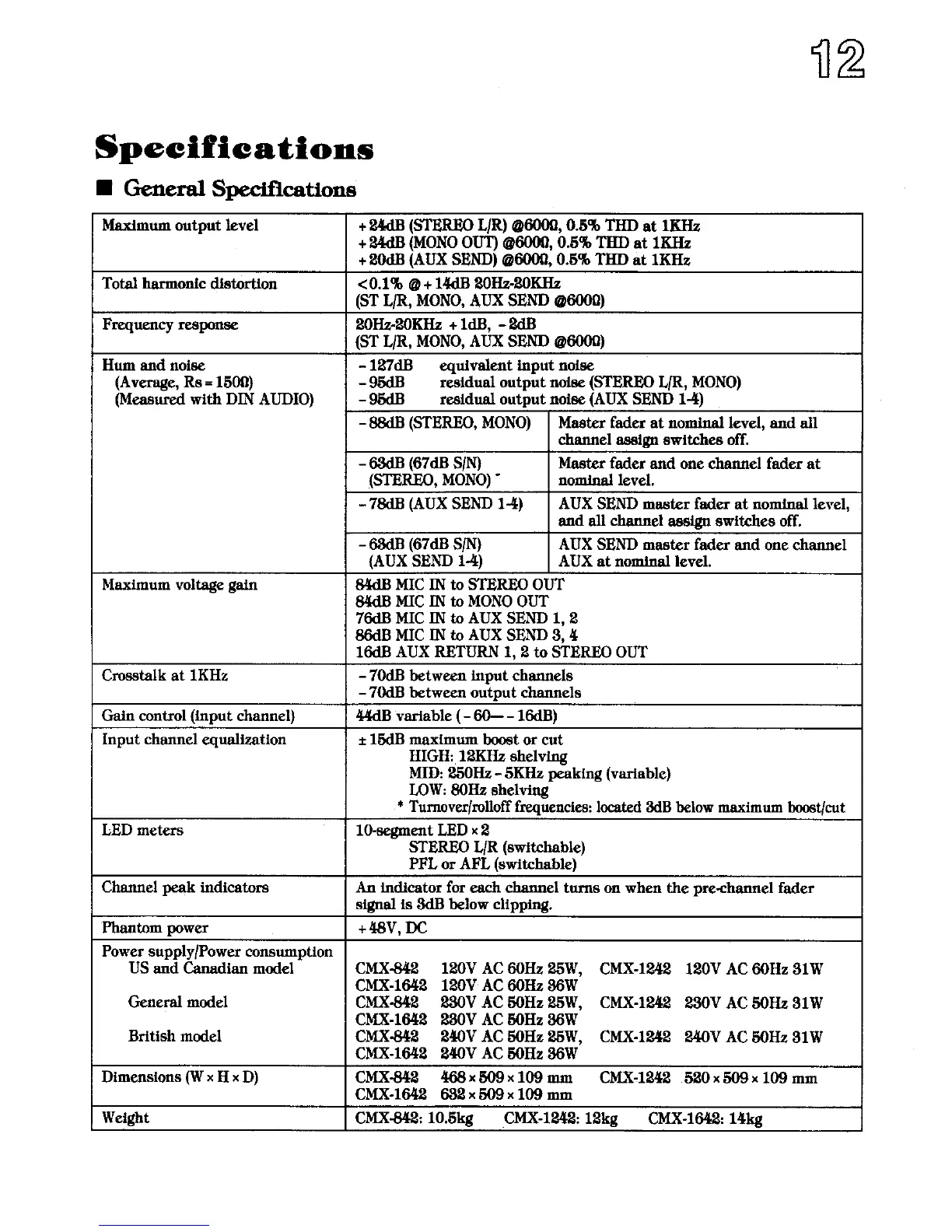 Inter-m CMX-1242 - Technical Specifications; General Specifications