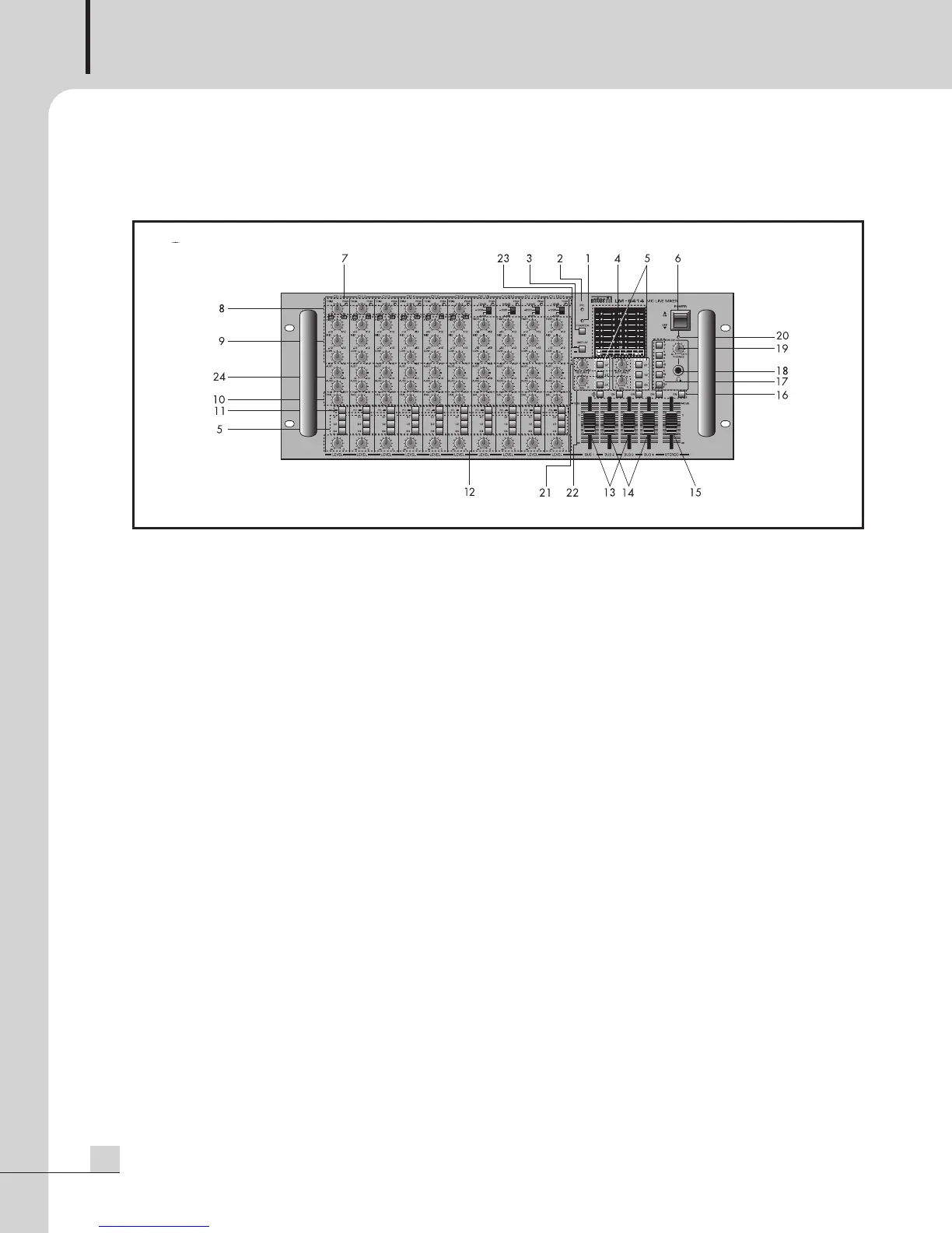 These multi-segment LED meters display the output level as selected by the Output Monitor Selector Switch (17)(23).