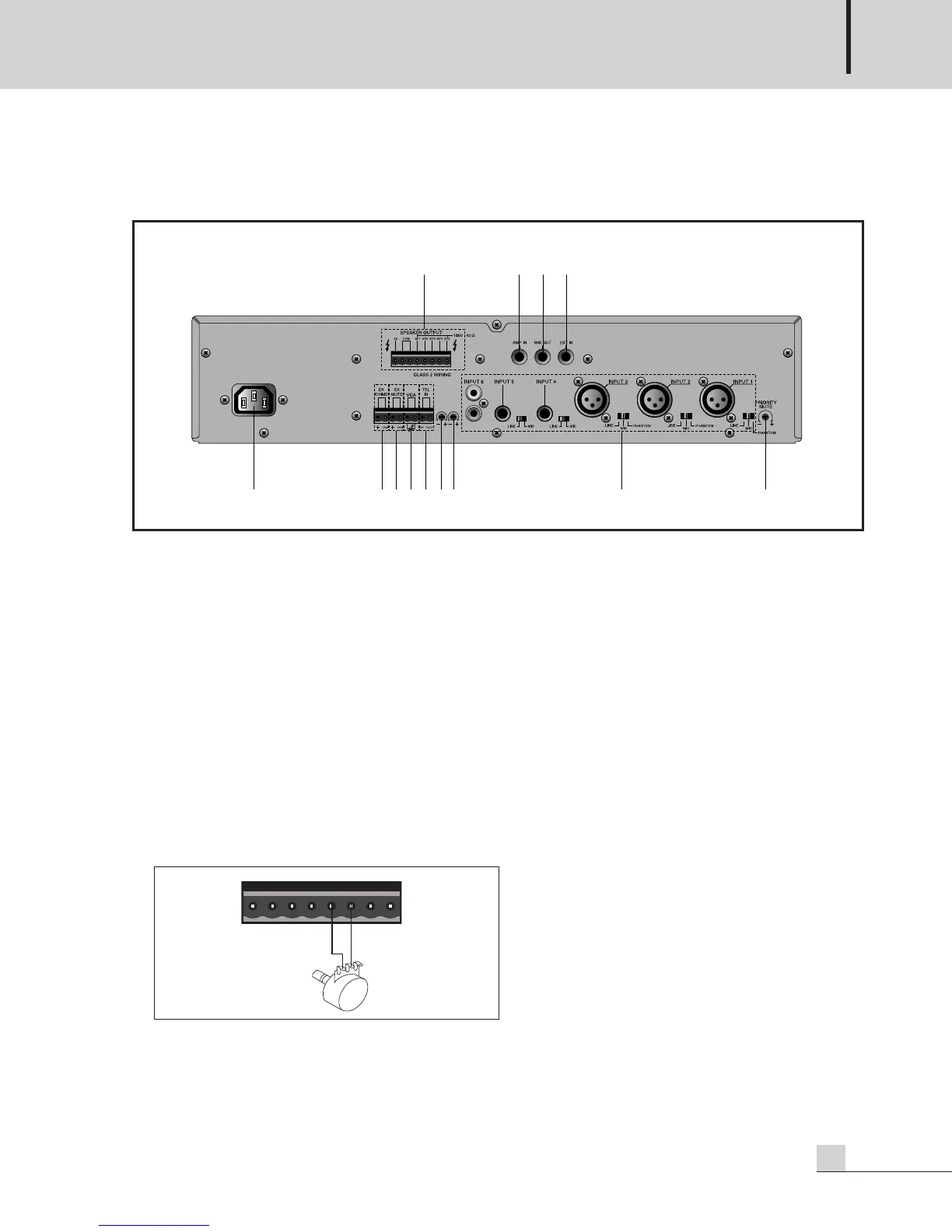 These terminals are provided for connection with a telephone exchange system for paging purposes.