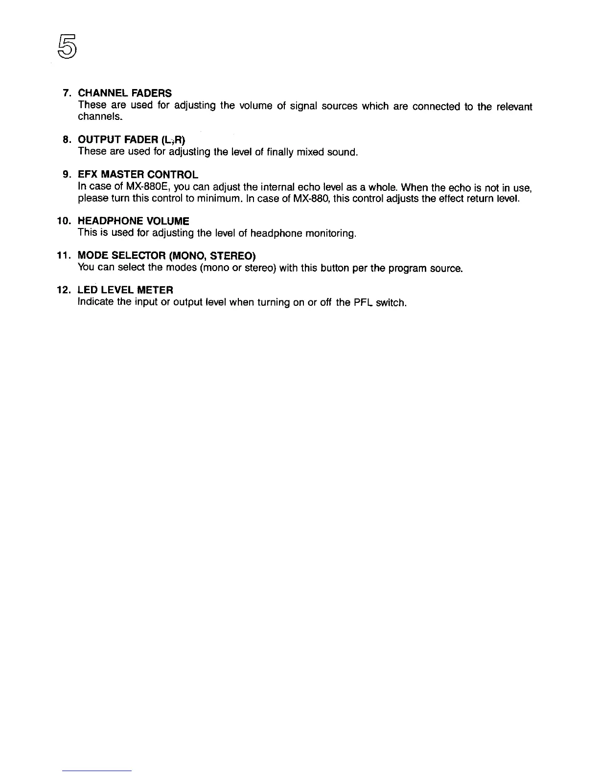 Inter-m MX-880E - CHANNEL FADERS; OUTPUT FADER (L,R); EFX MASTER CONTROL