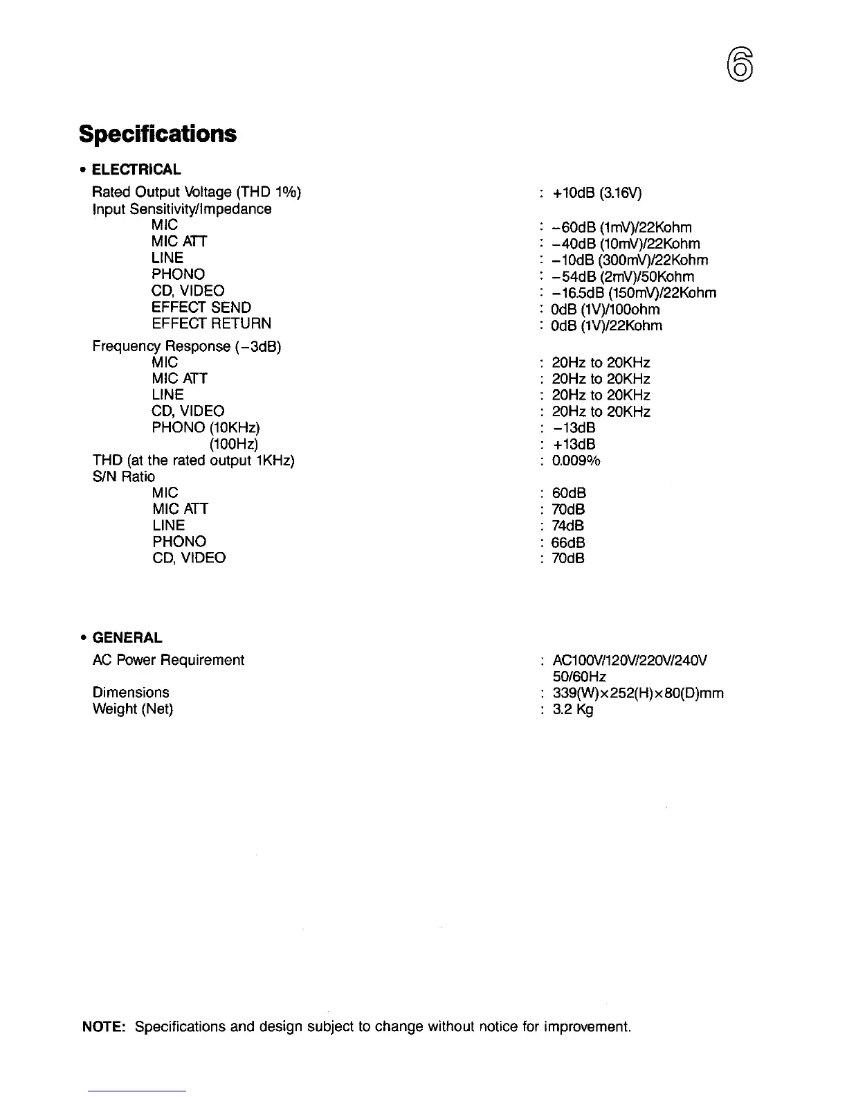 Inter-m MX-880E - Specifications; ELECTRICAL
