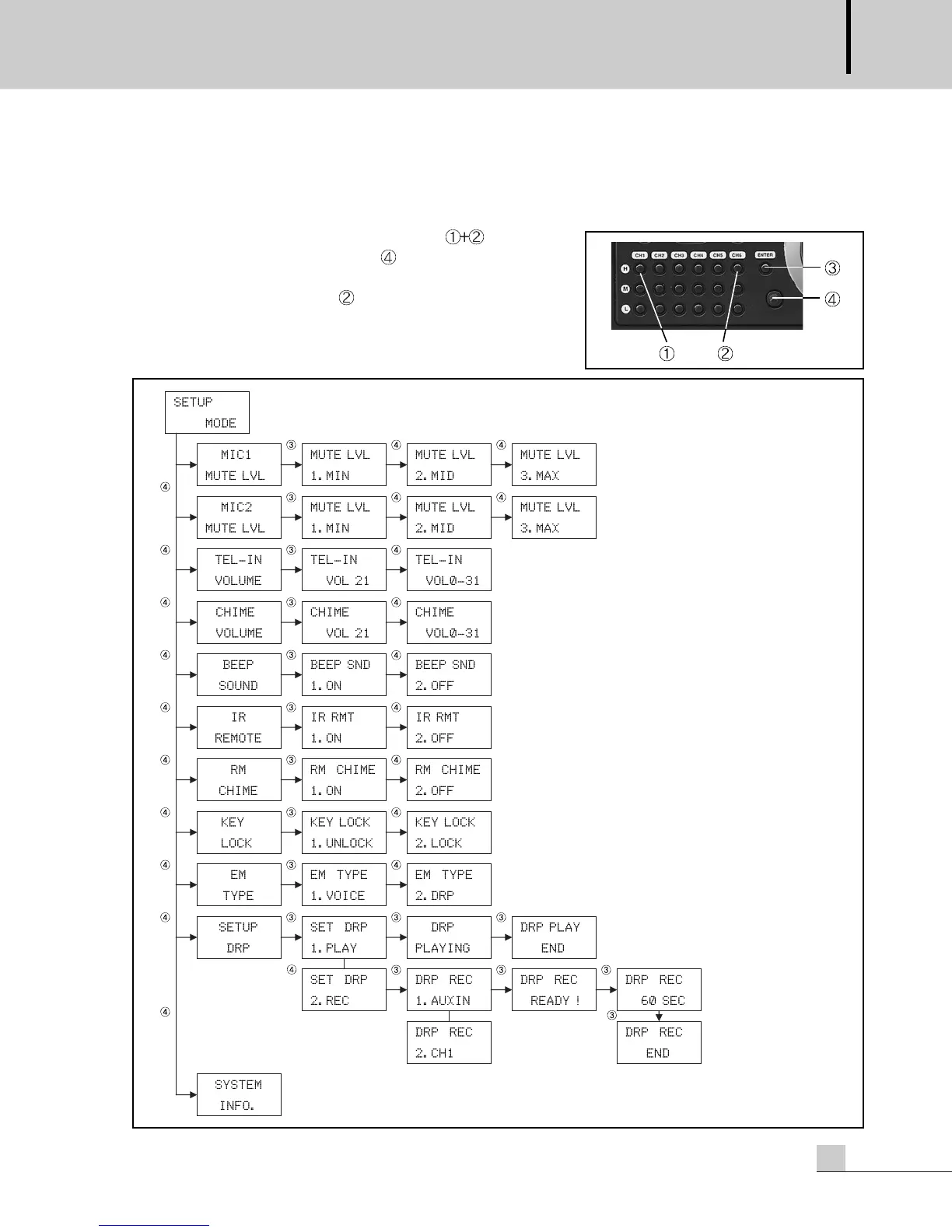 function, MIC 1, 2 Mute level, Tel-In volume, Chime volume, etc.