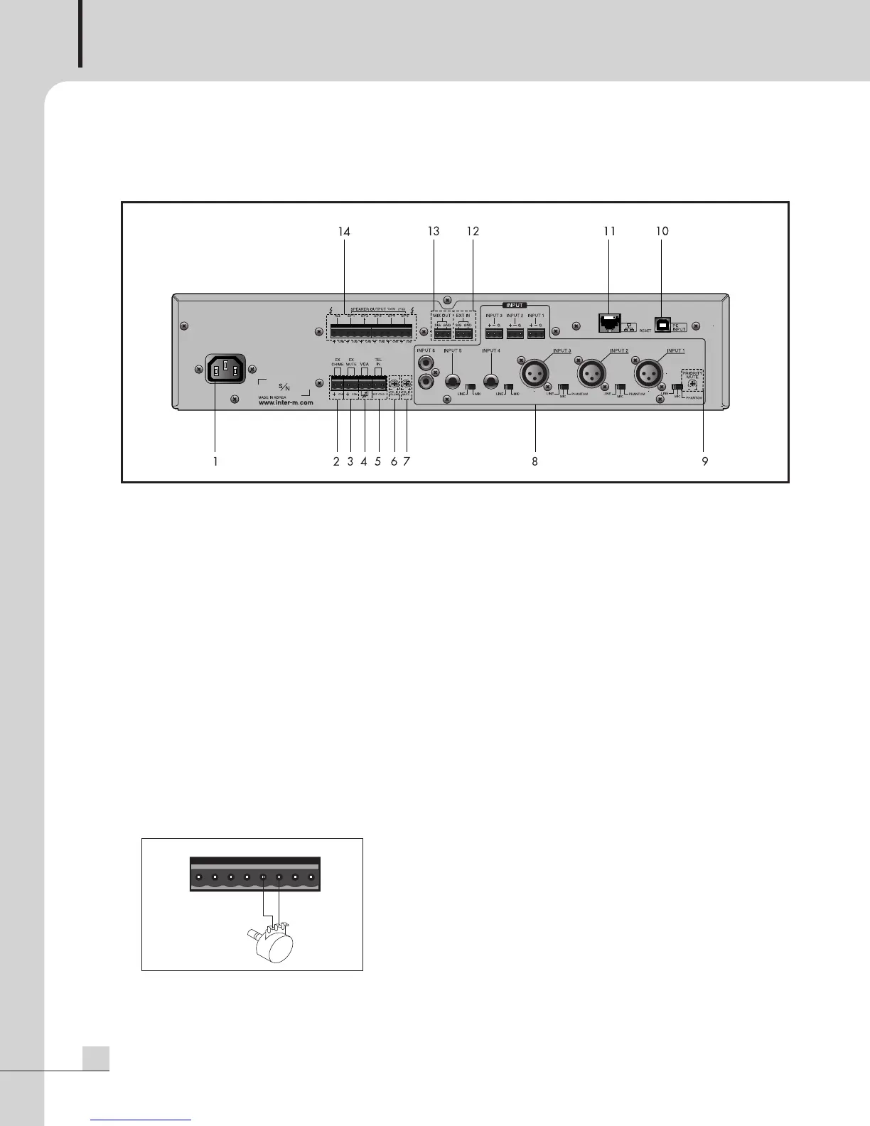 When these two terminals are shorted, the output signal is blocked and the protection indicator on the front