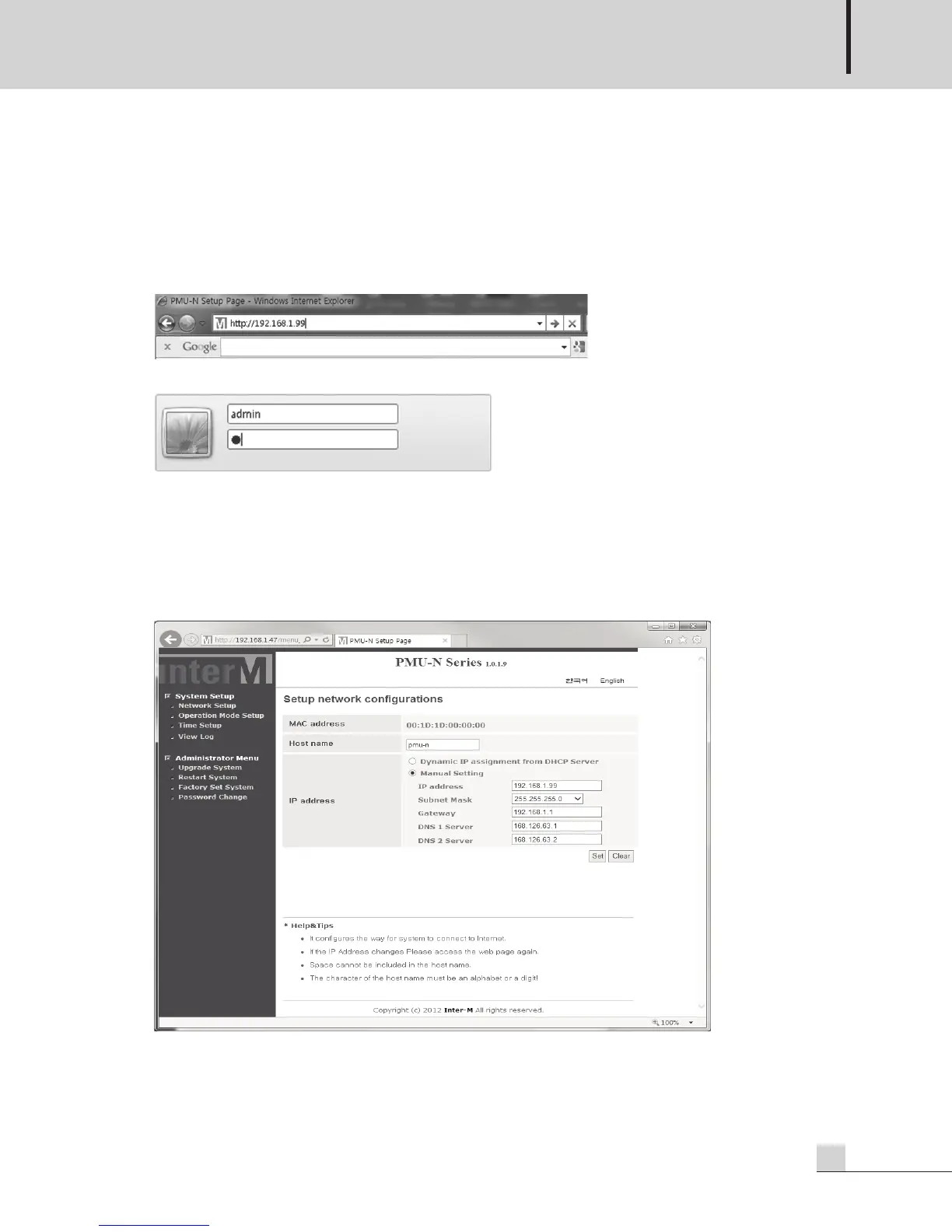 Type the created ID and PASSWORD to log in. (Default ID: admin, Password: 1)