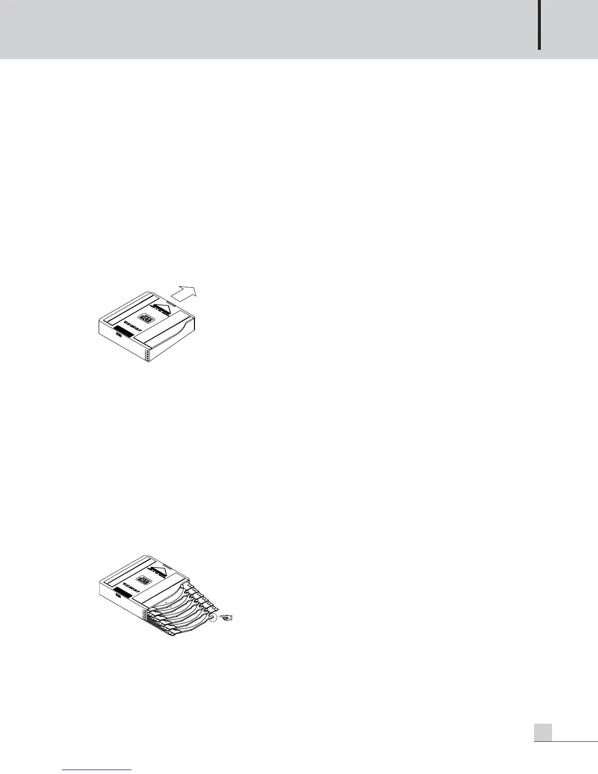 � Seeing the side of the Magazine taken out from the system, 6 trays to insert a disc are seen.