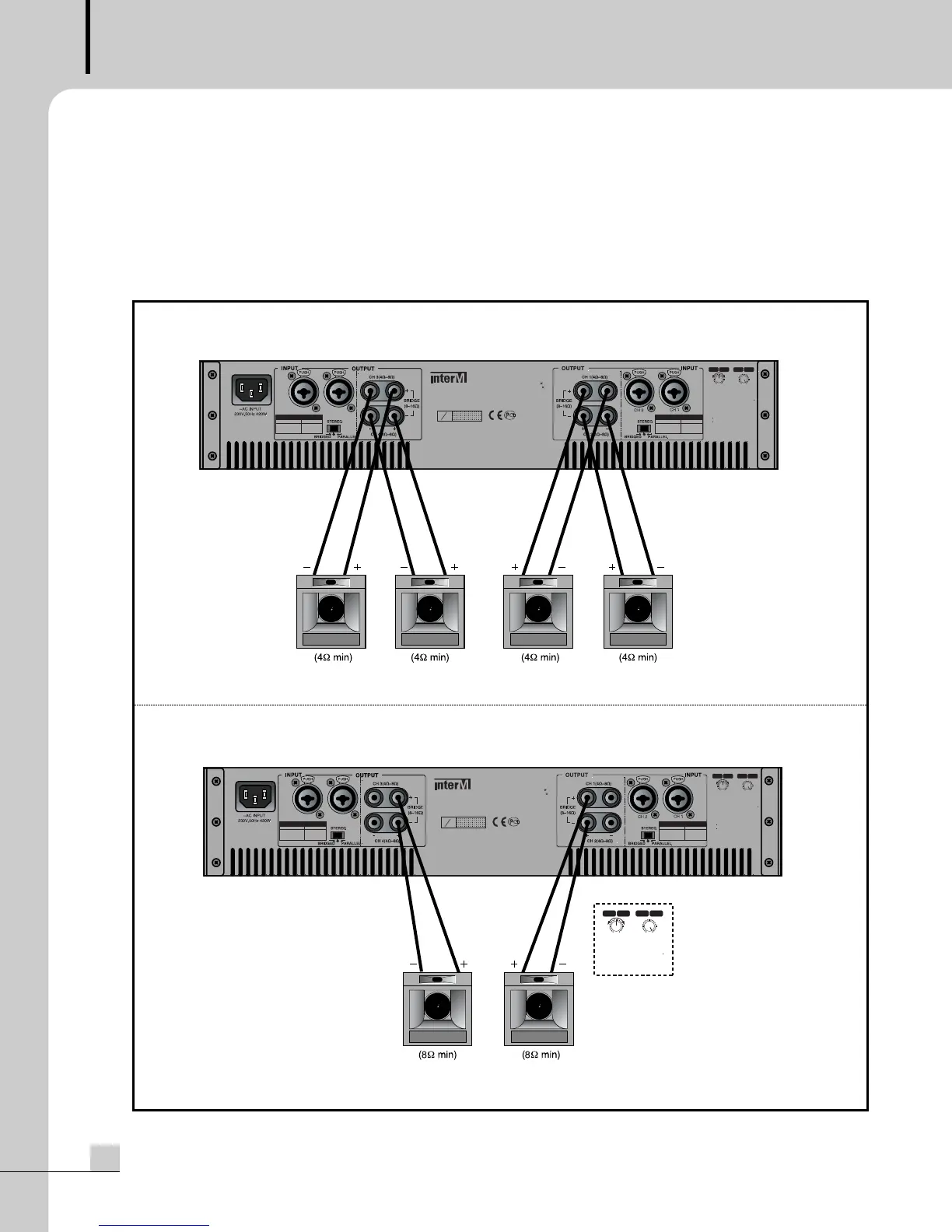 The QD-4240/4480 has three operational modes (Stereo/Parallel/Bridged), and speakers may be connected in