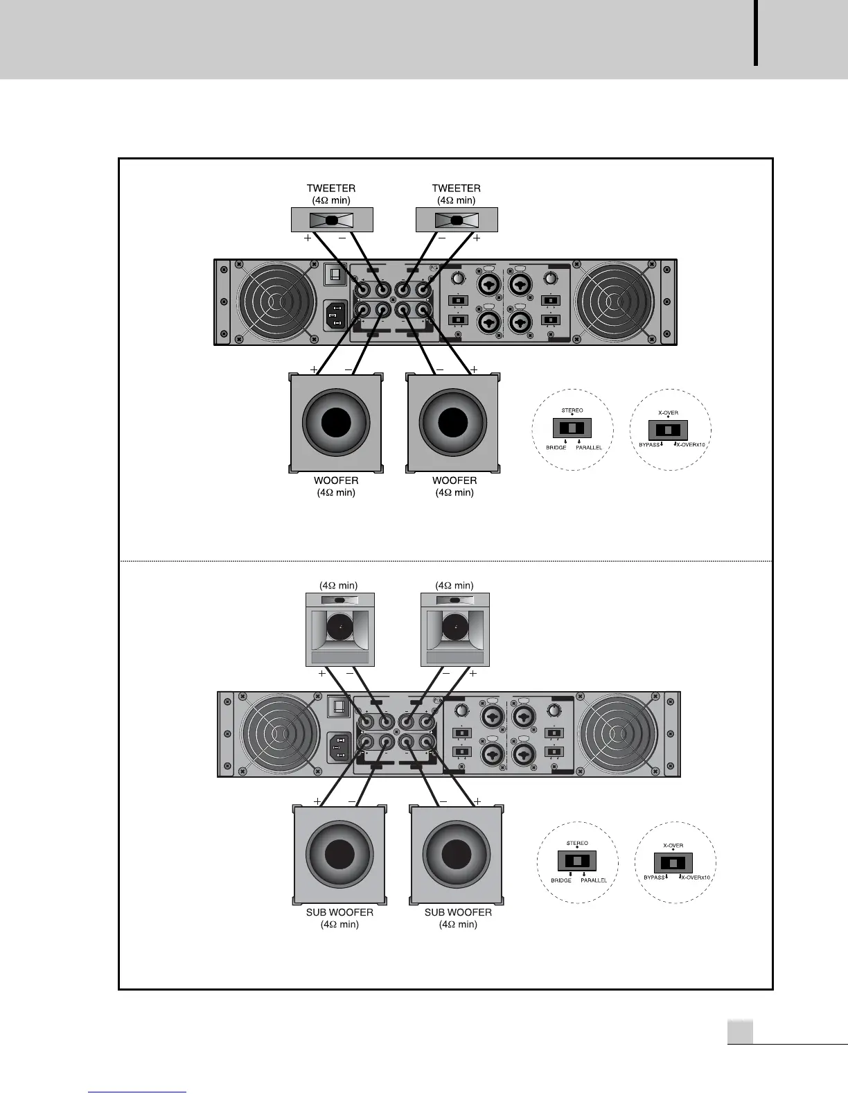 * CAUTION: When you apply to X-OVER MODE, you must connect correctly for protecting speakers from being